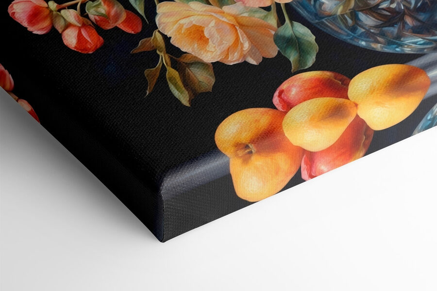 Înveseliți orice cameră cu această imprimare uimitoare pe pânză, “Pictură de flori într-o vază de sticlă”. Este ca și cum ai aduce o grădină direct în spațiul tău de locuit, fără polenul deranjant. Florile luxuriante în tonuri moi de piersică și roz dansează practic pe pânză, invitând zâmbete și căldură. Imaginați-vă această frumusețe deasupra canapelei dvs. sau într-un colț de lectură confortabil, creând atmosfera perfectă pentru discuții lungi sau momente liniștite cu o carte bună. În plus, acele portocale și mere superbe de la bază? Pur și simplu strigă proaspăt și primitor. Este o piesă care spune o poveste, transformând fiecare privire într-o mini evadare. Perfectă pentru oricine dorește să adauge o notă de natură și un strop de farmec decorului său!