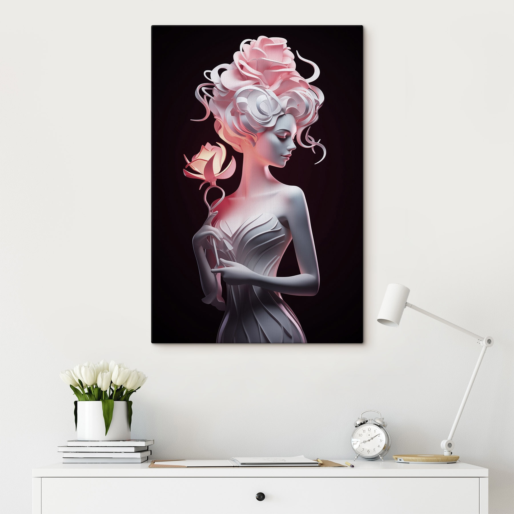 Transformați-vă spațiul cu această imprimare uimitoare pe pânză cu o femeie grațioasă care leagănă un trandafir. Este ca și cum ai avea o șoaptă a florilor chiar pe peretele tău. Detaliile delicate și nuanțele suave aduc un sentiment de calm, perfect pentru un colț de lectură confortabil sau un living elegant. Imaginați-vă că vă așezați în fotoliul preferat, cu o ceașcă de ceai în mână, și lăsați această frumusețe să vă fure atenția. Nu este doar artă; este un memento pentru a aprecia lucrurile mărunte, cum ar fi strălucirea unui apus de soare. Lăsați această piesă încântătoare să vă înalțe decorul cu o notă de fantezie și romantism.