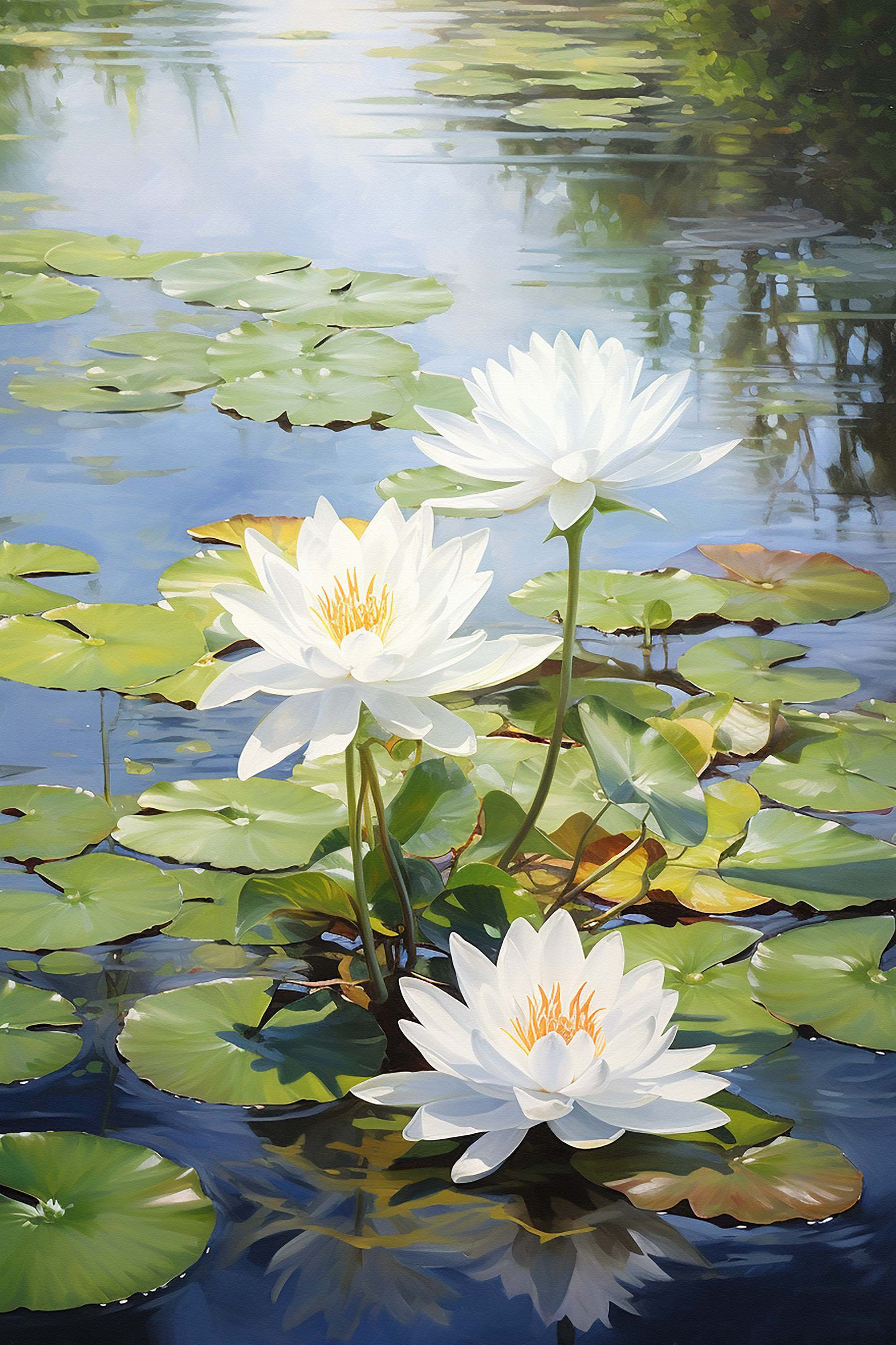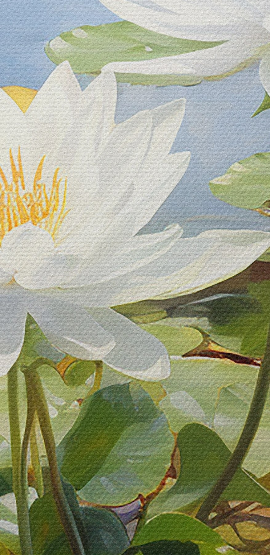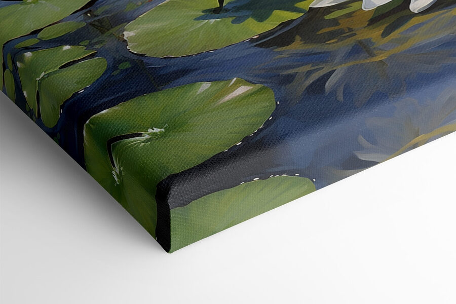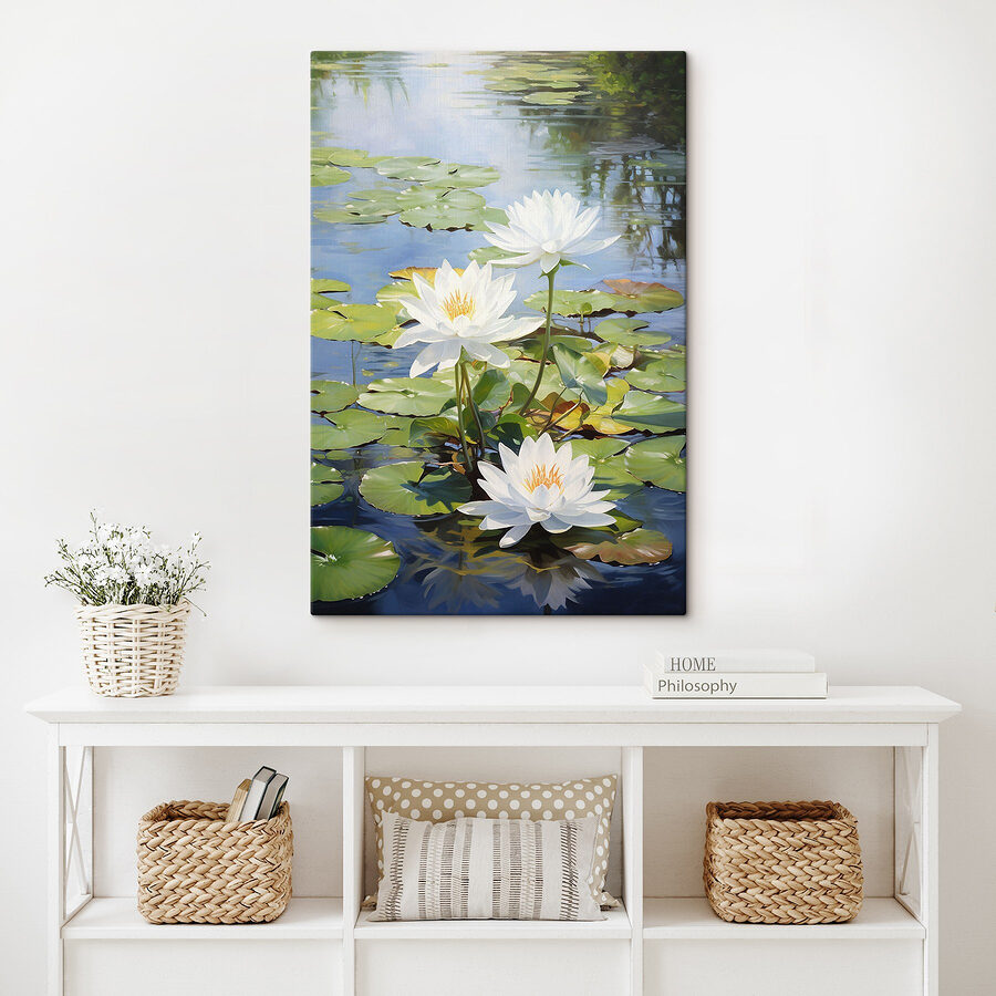 Imaginați-vă că intrați într-o cameră și sunteți întâmpinați de un iaz senin plin cu flori albe grațioase – sună de vis, nu-i așa? Această imprimare pe pânză surprinde exact acest lucru! Cu nuanțele sale delicate de acuarelă și reflexiile pașnice, aduce o felie de natură chiar în casa ta. Este perfect pentru o intrare sau un colț de lectură confortabil, unde vă puteți relaxa. Imaginați-vă cum vă așezați în fotoliul preferat, cu o ceașcă de ceai în mână, în timp ce eleganța blândă a acestor flori șoptește gânduri calme în aer. Este ca și cum ai avea o mică escapadă în fiecare zi. Serios, cine nu și-ar dori asta?