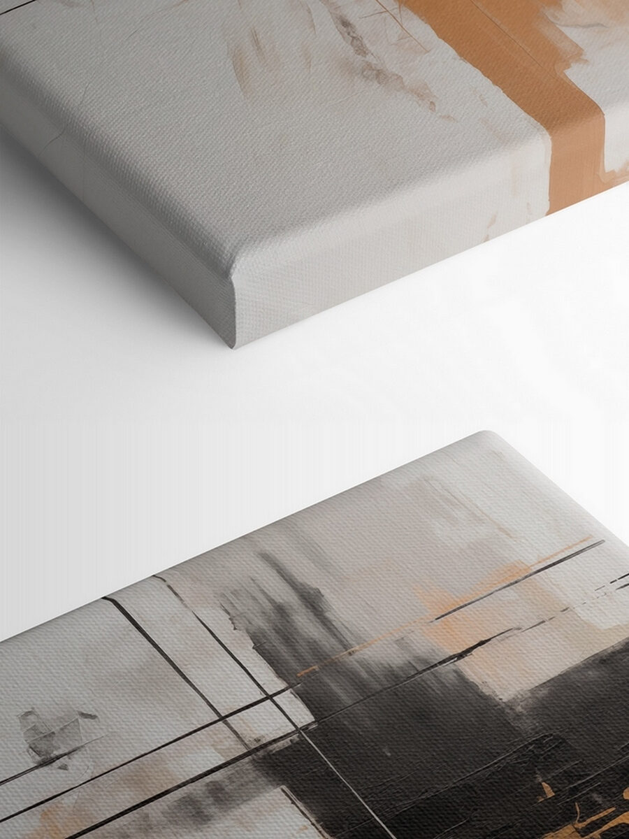 Scufundați-vă în lumea îndrăzneață a acestui print pe pânză, în care negrul și portocaliul dansează ca doi prieteni buni la o petrecere – viu, dar cool fără efort. Este piesa perfectă pentru a condimenta orice cameră, adăugând un strop de energie care șoptește, “Uită-te la mine!” fără a fi prea tare. Imaginați-vă sorbind cafea în timp ce o priviți, pierduți în culorile și tușele jucăușe. Este minimalist, dar nu plictisitor; spune o poveste fără să strige. Perfect pentru nopțile confortabile în casă sau atunci când oaspeții trec pe aici. Această imprimare este despre vibrații bune și povești amuzante!