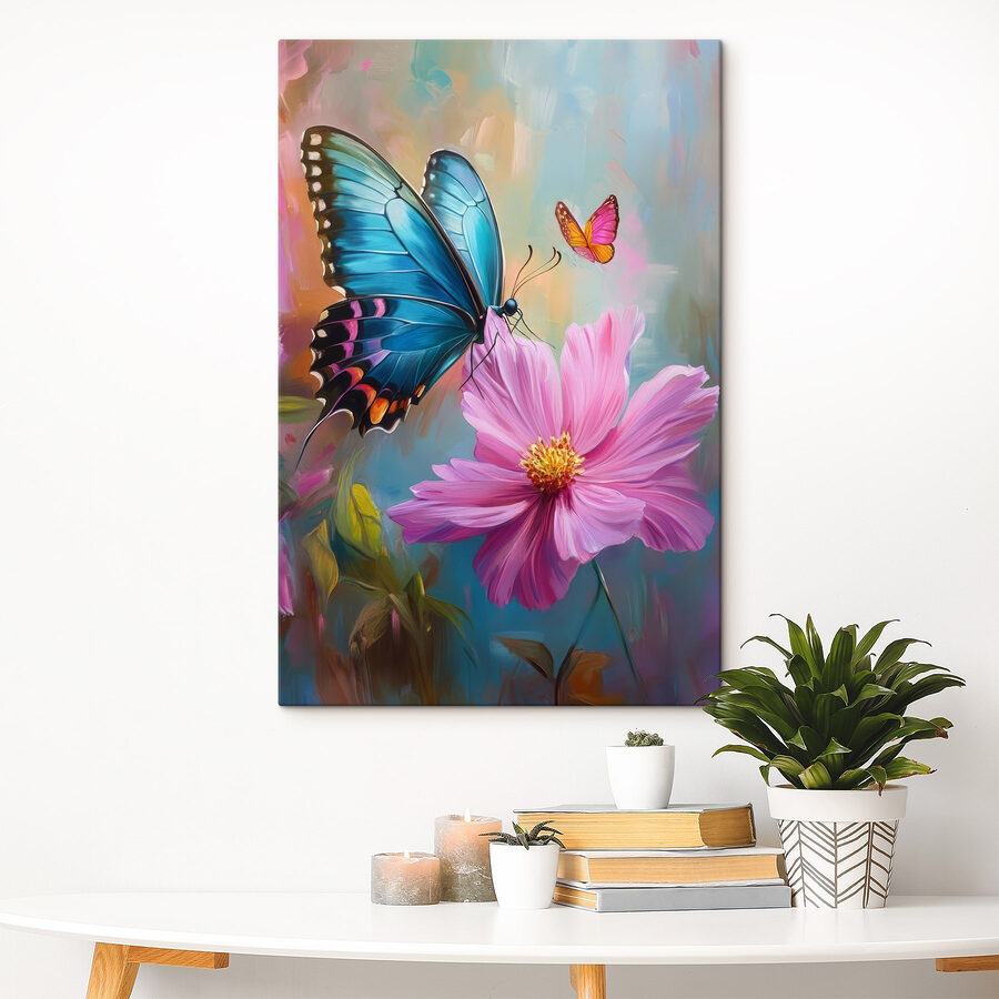 Transformați orice cameră cu fermecătorul “Tablouri Butterfly on a Flower”. Imaginați-vă că intrați în spațiul dvs. și sunteți întâmpinați de nuanțe vibrante de albastru și roz, un fluture așezat delicat pe o floare înflorită. Este ca și cum natura ar fi decis să intre în sufrageria dvs. pentru o discuție! Această piesă surprinde frumusețea și capriciile din aer liber, aducând o stare de spirit instantanee. Perfectă pentru un colțișor confortabil sau chiar pentru o cameră de copil, aceasta invită la vise cu ochii deschiși la grădini însorite și după-amieze leneșe. Așadar, agățați-o, respirați adânc și lăsați frumusețea primăverii să vă umple casa pe tot parcursul anului!