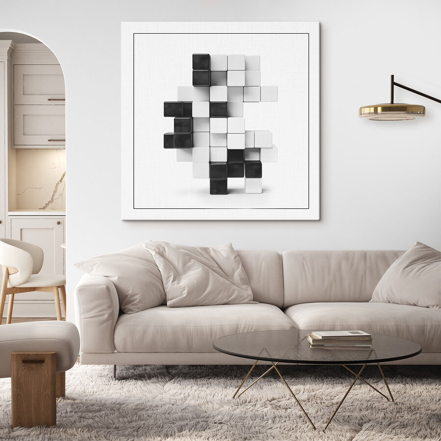 Transformați-vă spațiul cu această imprimare pe pânză atrăgătoare, cu cuburi albe și negre stivuite într-un design abstract jucăuș. Este ca un puzzle contemporan care stârnește curiozitatea – perfect pentru acel prieten care întotdeauna trebuie să înțeleagă lucrurile. Imaginați-vă-o agățată într-o cameră de zi confortabilă, atrăgând privirea cu contrastele sale îndrăznețe și formele dinamice. Creează o atmosferă modernă și primitoare, făcând orice perete să pară viu. În plus, stârnește conversații fără efort – cine nu ar vrea să discute despre farmecul excentric al clădirilor cubice? Perfect pentru toți iubitorii de decor unic!
