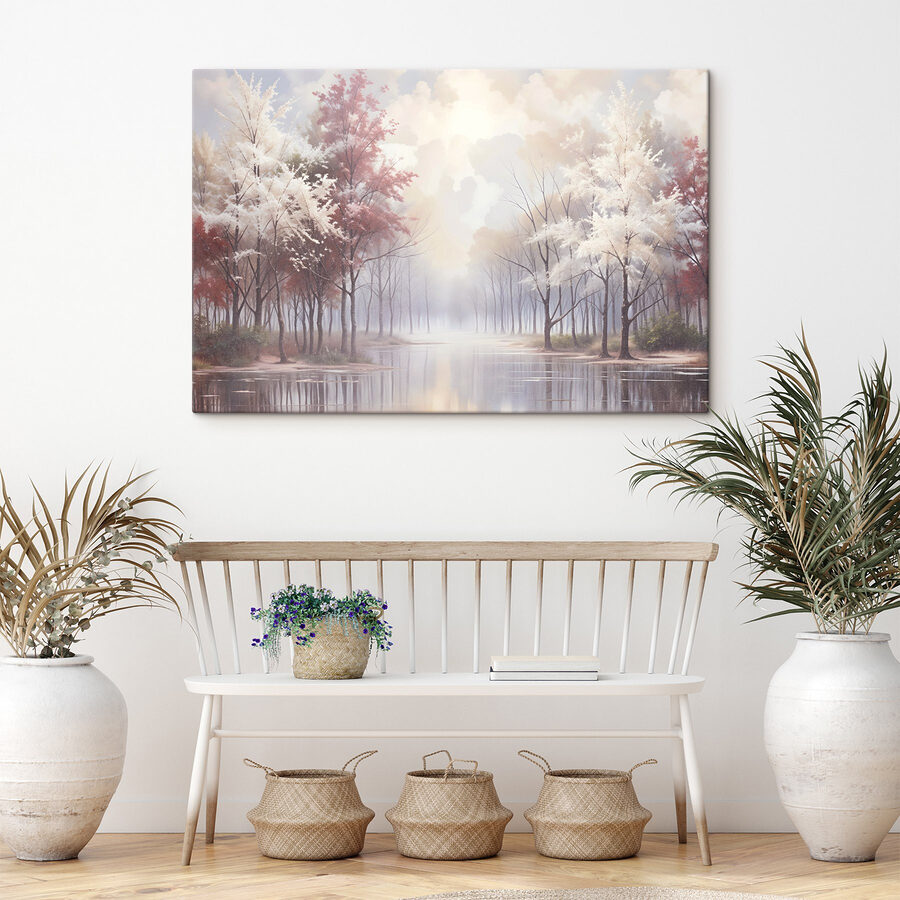 Transformați-vă pereții cu această imprimare uimitoare pe pânză, “Corp de apă cu copaci și un cer noros”. Imaginați-vă acest lucru: un curs de apă senin înconjurat de copaci grațioși, nori de vis atârnând deasupra – este ca și cum natura vă șoptește secrete. Imaginează-ți că te relaxezi în camera ta de zi, culorile blânde stârnind un pic de calm după o zi lungă. Adaugă o atmosferă confortabilă, perfectă pentru a visa cu ochii deschiși sau a împărtăși povești. Perfectă pentru oricine tânjește după un strop de liniște în spațiul său, această piesă ar putea inspira un pic de dorință de călătorie. Cine știe, ar putea chiar stârni o discuție despre următoarea aventură în aer liber! Așadar, dați-i drumul și lăsați această operă de artă să vă aducă o felie de aer liber în interior – este practic un bilet către natură, fără insecte!