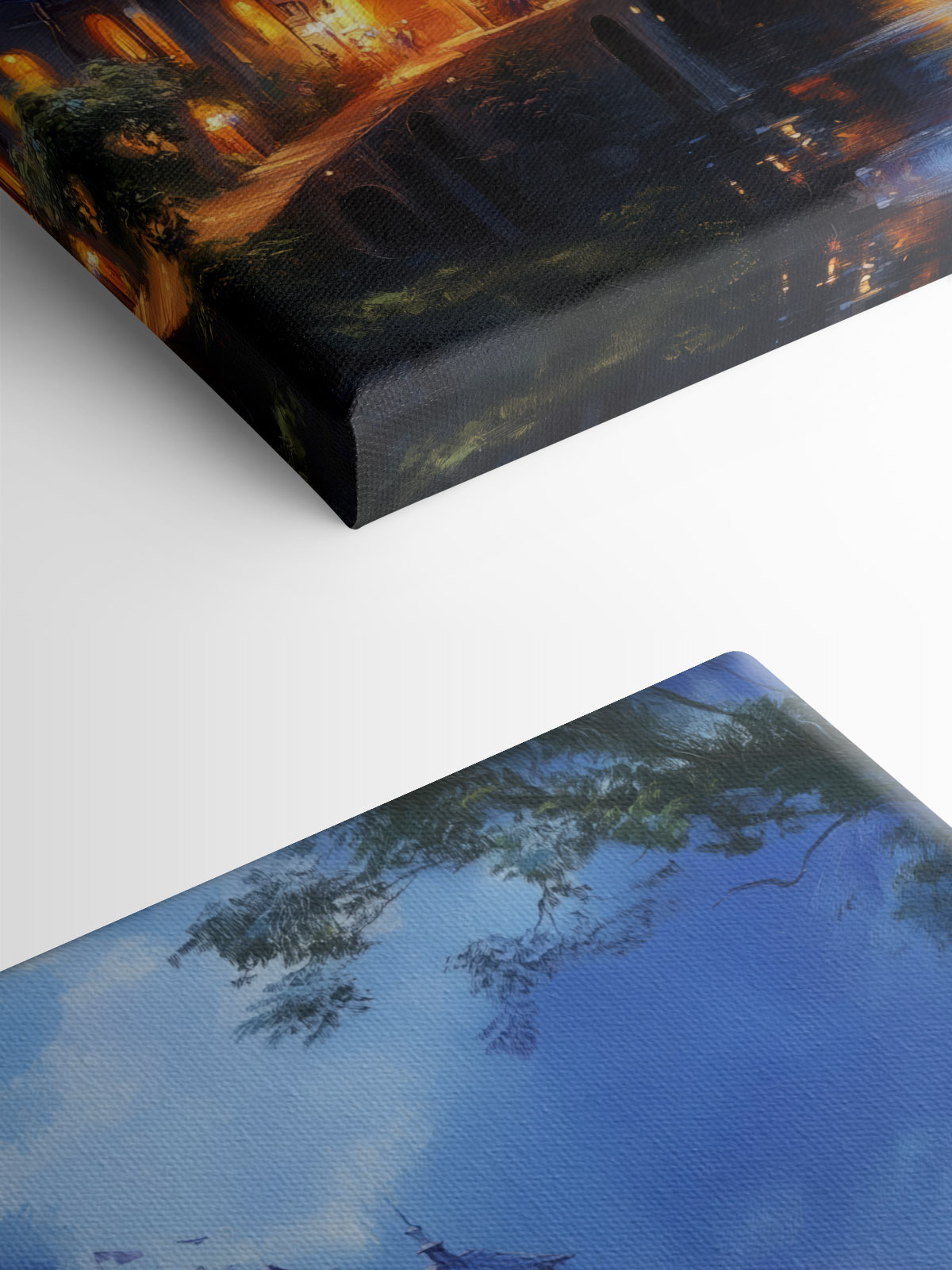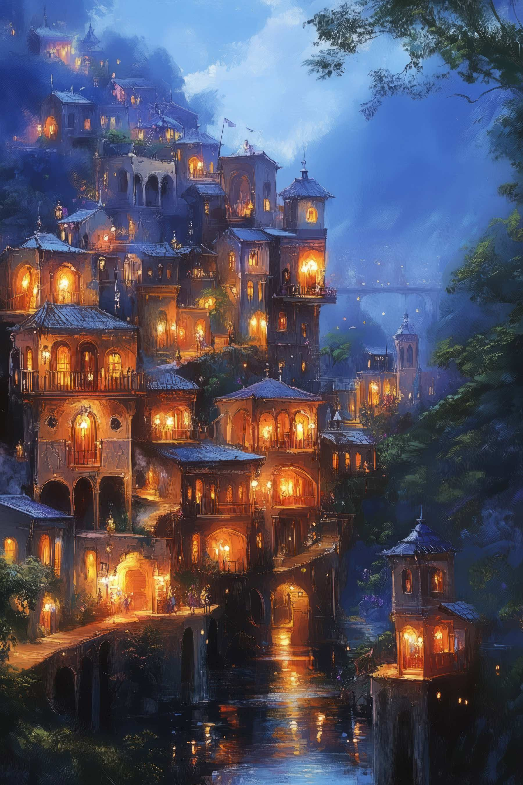 Imaginați-vă că pășiți într-o seară confortabilă, în care luminile scânteietoare dansează pe un deal și fiecare fereastră spune o poveste. Această imprimare pe pânză, “Clădiri luminate pe un deal”, surprinde acea atmosferă încântătoare, perfectă pentru a adăuga căldură oricărui perete. Strălucirea blândă a ferestrelor duce cu gândul la întâlniri pline de râsete sau la nopți liniștite, sorbind ceai, pierduți în vise. Fie că împodobește o cameră de zi sau un colțișor din casa dvs., este ca și cum ați invita o bucată de magie de basm înăuntru. Șoaptele prietenoase de la această operă de artă ar putea chiar declanșa conversații despre aventurile ce vor urma. Este mai mult decât un simplu decor – este o stare de spirit!