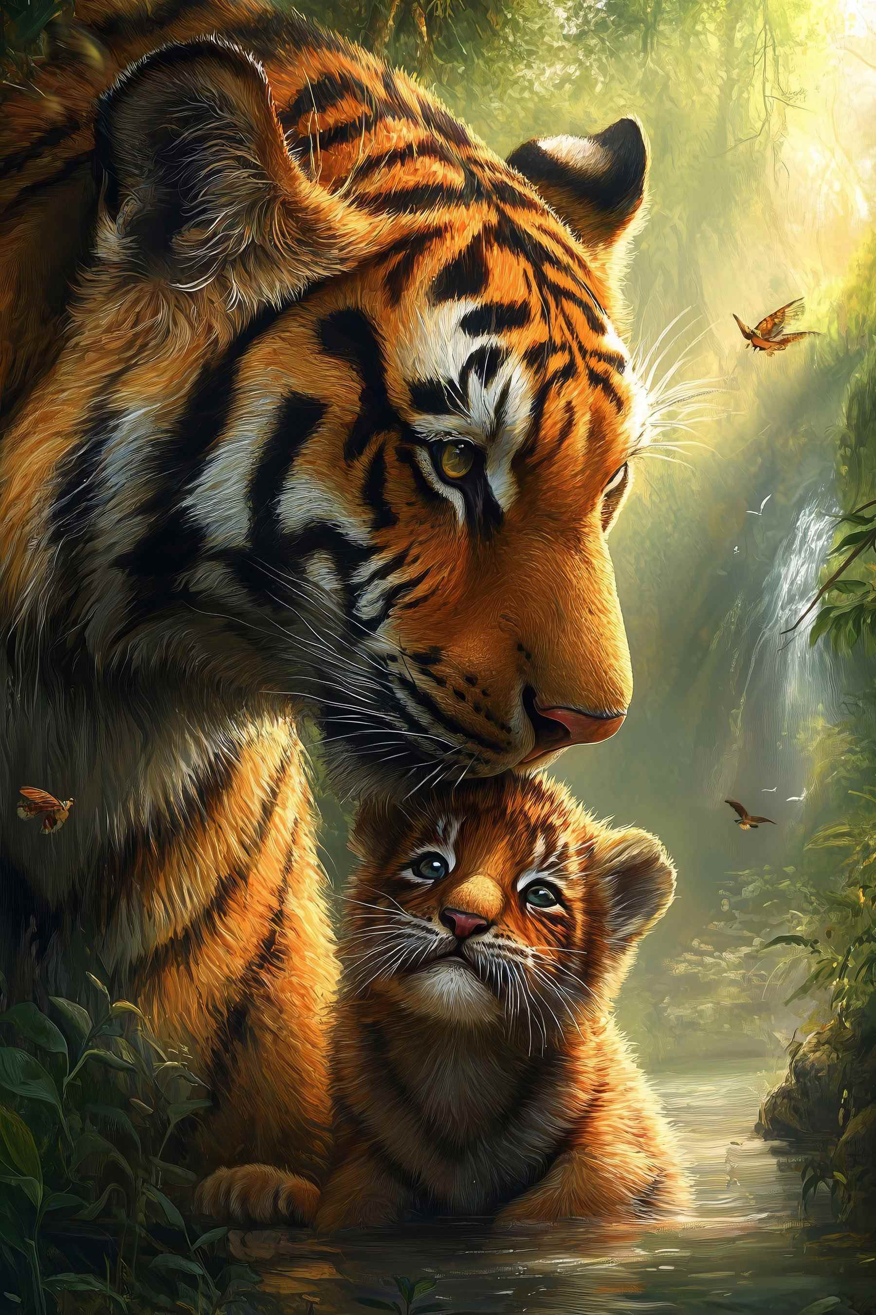 Scufundați-vă în sălbăticie cu această imprimare uimitoare pe pânză cu un tigru și puiul său adorabil, perfect cuibărit într-o scenă de junglă luxuriantă. Privirea micului pui de tigru atinge coardele inimii, nu-i așa? Imaginați-vă această piesă decorând un colț confortabil, stârnind conversații și poate chiar câteva vise cu ochii deschiși la safari și trasee însorite. Culorile vibrante aduc un strop de natură în interior, amintindu-le tuturor de frumusețea din fața ușilor noastre. Este ca și cum ai avea o bucățică din sălbăticie chiar în casa ta! Perfect pentru iubitorii de animale sau pentru oricine dorește să adauge un farmec fioros decorului său. În plus, cine nu ar dori o doză zilnică de drăgălășenie?