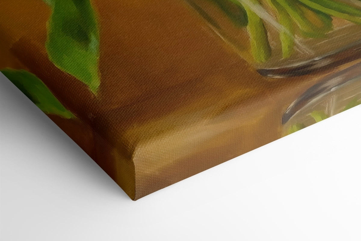 Înveseliți orice cameră cu această imprimare uimitoare pe pânză a lalelelor galbene vesele într-o vază de sticlă. Imaginați-vă aceste frumuseți împodobindu-vă peretele, răspândind căldură și o notă de natură chiar în spațiul dvs. Nuanțele vibrante și verdele luxuriant creează un contrast minunat, făcând să vă simțiți ca primăvara pe tot parcursul anului. Imaginați-vă sorbind cafeaua dimineața, aruncând priviri la aceste flori încântătoare și simțind acel mic impuls de fericire. Perfect pentru orice iubitor de flori sau pentru oricine dorește doar să adauge un strop de bucurie decorului său. Cine nu ar zâmbi cu aceste lalele prin preajmă?