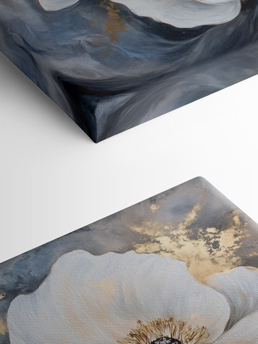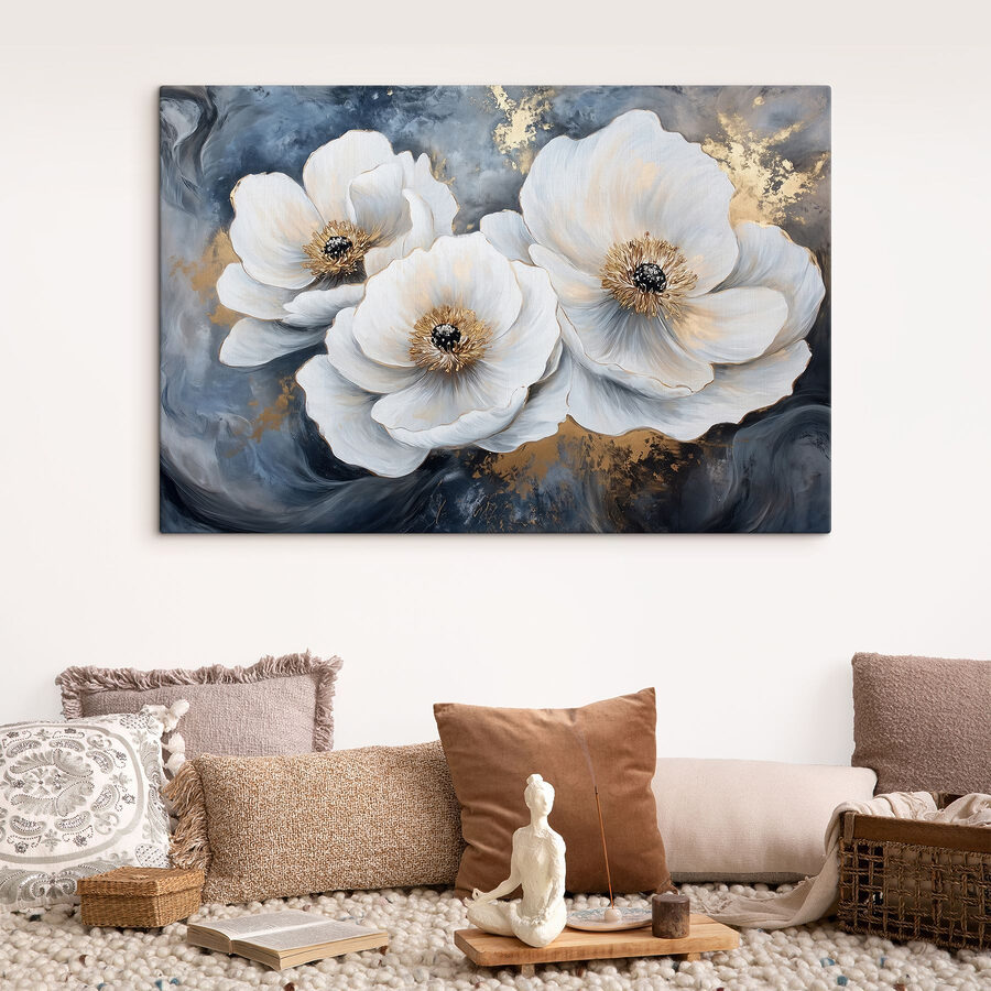 Înveseliți orice colț cu această imprimare uimitoare pe pânză a florilor albe, o piesă care se simte ca o gură de aer proaspăt. Imaginați-vă că intrați în camera dvs. și sunteți întâmpinați de aceste flori elegante, petalele lor șoptindu-vă blândețe pe un fundal bogat și mohorât. Este ca și cum ai avea o grădină în casa ta, fără albinele enervante! Perfectă pentru serile confortabile sau pentru întâlnirile pline de viață, această artă invită la zâmbete și complimente. Este o mică felie de natură care îți poate transforma spațiul într-un refugiu senin. Serios, cui nu-i plac florile?