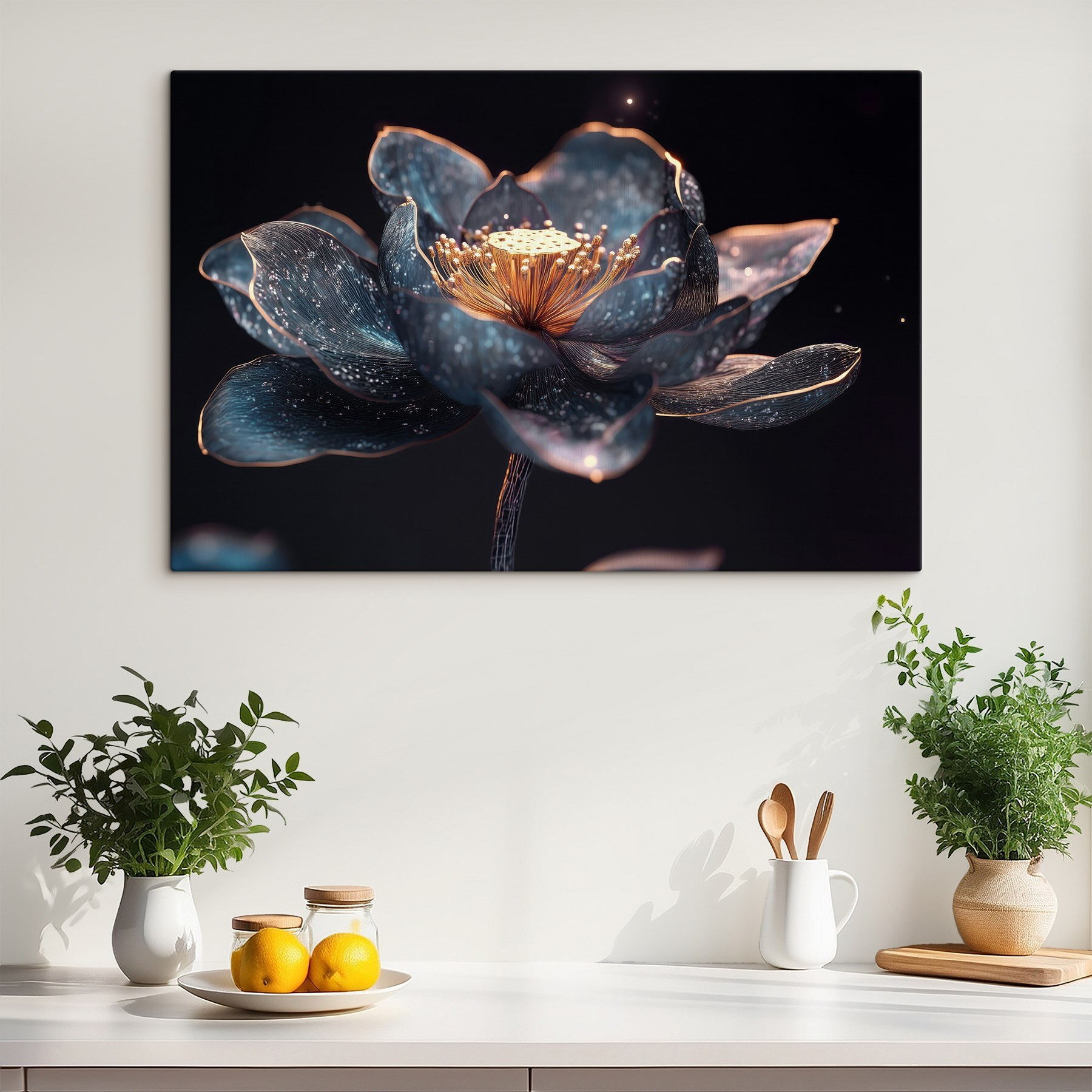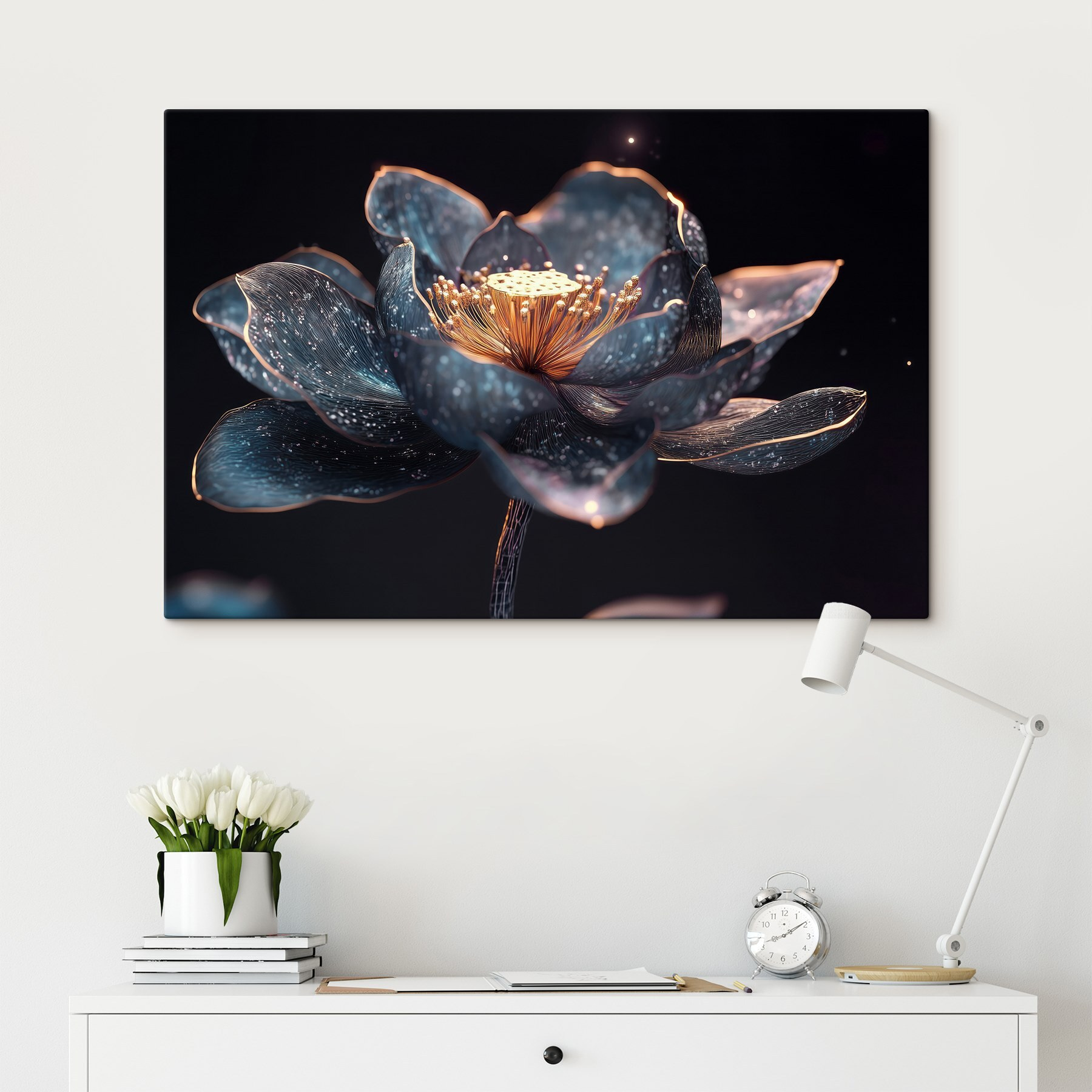 Luminează orice spațiu cu “Enchanting Bloom in Dark Hues”. Această imprimare pe pânză combină fără efort eleganța cu o notă de mister, ca o floare care tocmai a înflorit în lumina lunii. Imaginați-vă-o pe perete – culorile sale profunde și bogate vă atrag, ca și cum ar șopti secrete dintr-o grădină ascunsă. Este perfectă pentru a crea un colțișor confortabil sau chiar pentru a iniția o conversație atunci când prietenii trec pe la tine. Imaginați-vă pe cineva privind-o, simțindu-se calm, dar intrigat. Este mai mult decât artă; este un memento zilnic că frumusețea poate crește în locuri neașteptate. Un plus minunat pentru orice colecție!