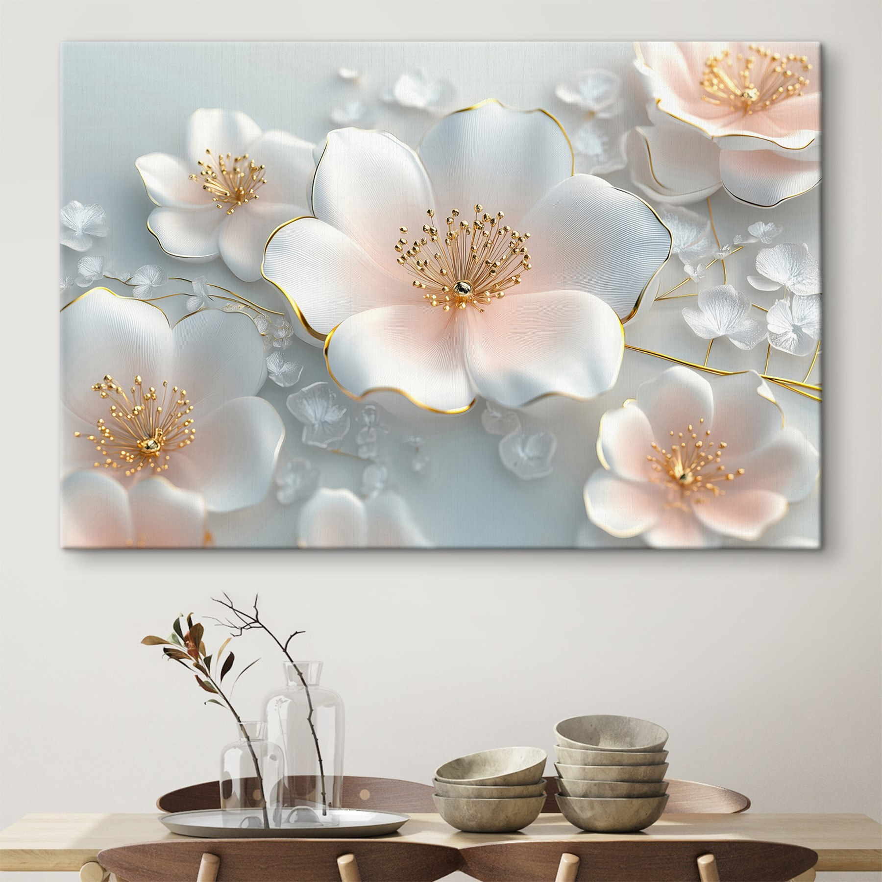 Transformați orice spațiu într-o oază de seninătate cu această imprimare uimitoare pe pânză cu un grup delicat de flori albe. Acesta lasă o impresie elegantă și primitoare, ca o dimineață proaspătă de primăvară. Nuanțele blânde și detaliile complexe vă vor face pereții să cânte, adăugând o notă de farmec naturii fără a fi nevoie să udați nimic! Imaginați-vă că intrați în cameră și sunteți întâmpinați de această frumusețe – este ca o îmbrățișare moale pentru simțurile dumneavoastră. Perfectă pentru acele colțuri confortabile sau ca piesă statement, această operă de artă captează esența liniștii pure și a rafinamentului, făcând-o un must-have pentru orice iubitor de flori.