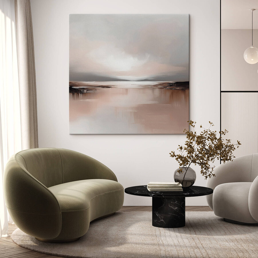Transformarea oricărui spațiu într-un refugiu senin este la doar o imprimare pe pânză distanță! “Water with a Cloudy Sky” surprinde fără efort momentele de vis de lângă țărm, unde apa întâlnește un cer șoptitor. Imaginați-vă acest lucru: vă sorbiți cafeaua de dimineață, priviți nuanțele blânde de gri și ruj moale, simțind că ați adus o bucată de coastă chiar în sufrageria dvs. Este ca o mini-vacanță pentru pereții dvs. Perfectă pentru iubitorii de natură sau pentru oricine are nevoie de puțină liniște, această piesă oferă un vibe relaxant și elegant. Cine ar fi crezut că o pânză se poate simți ca o briză?