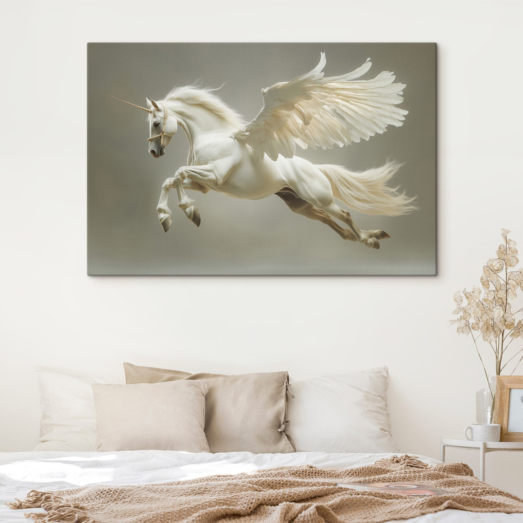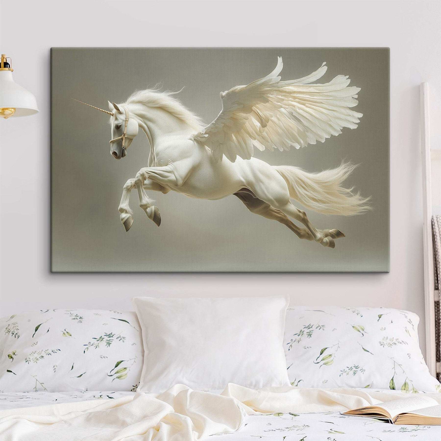 Imaginați-vă această imprimare uimitoare pe pânză a unui cal alb cu aripi care vă împodobește peretele. Nu este doar artă; este un pic de fantezie care vă face să zâmbiți de fiecare dată când treceți pe lângă el. Imaginați-vă această creatură maiestuoasă înălțându-se printre nori moi, amintindu-ne că imaginația nu cunoaște limite. Tonurile subtile creează o atmosferă liniștitoare, perfectă pentru un colț de lectură confortabil sau o cameră de zi vibrantă. Prietenii s-ar putea să se oprească și să se holbeze, întrebându-se dacă pot călări această frumusețe. Pe măsură ce captează inimile, cu siguranță va stârni bucurie și un strop de magie în viața de zi cu zi. Ce ți-ai putea dori mai mult?