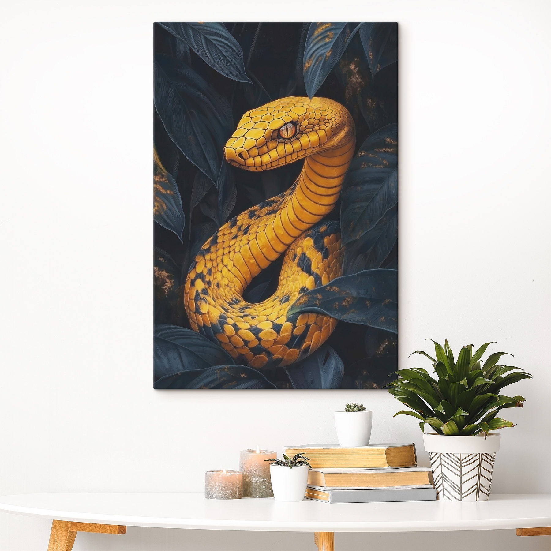 Transformați orice spațiu cu această imprimare uimitoare pe pânză, “Șarpe galben cu frunze negre”. Este ca și cum ai avea o bucățică din sălbăticie chiar în sufrageria ta – fără șarpele real, desigur! Galbenul vibrant al șarpelui contrastează cu verdele întunecat și luxuriant, creând un punct focal captivant care atrage privirea. Imaginați-vă că intrați într-o cameră și toată lumea spune: “Wow, de unde ai luat asta?” Este perfect pentru iubitorii de animale sau pentru oricine este pasionat de un decor unic.