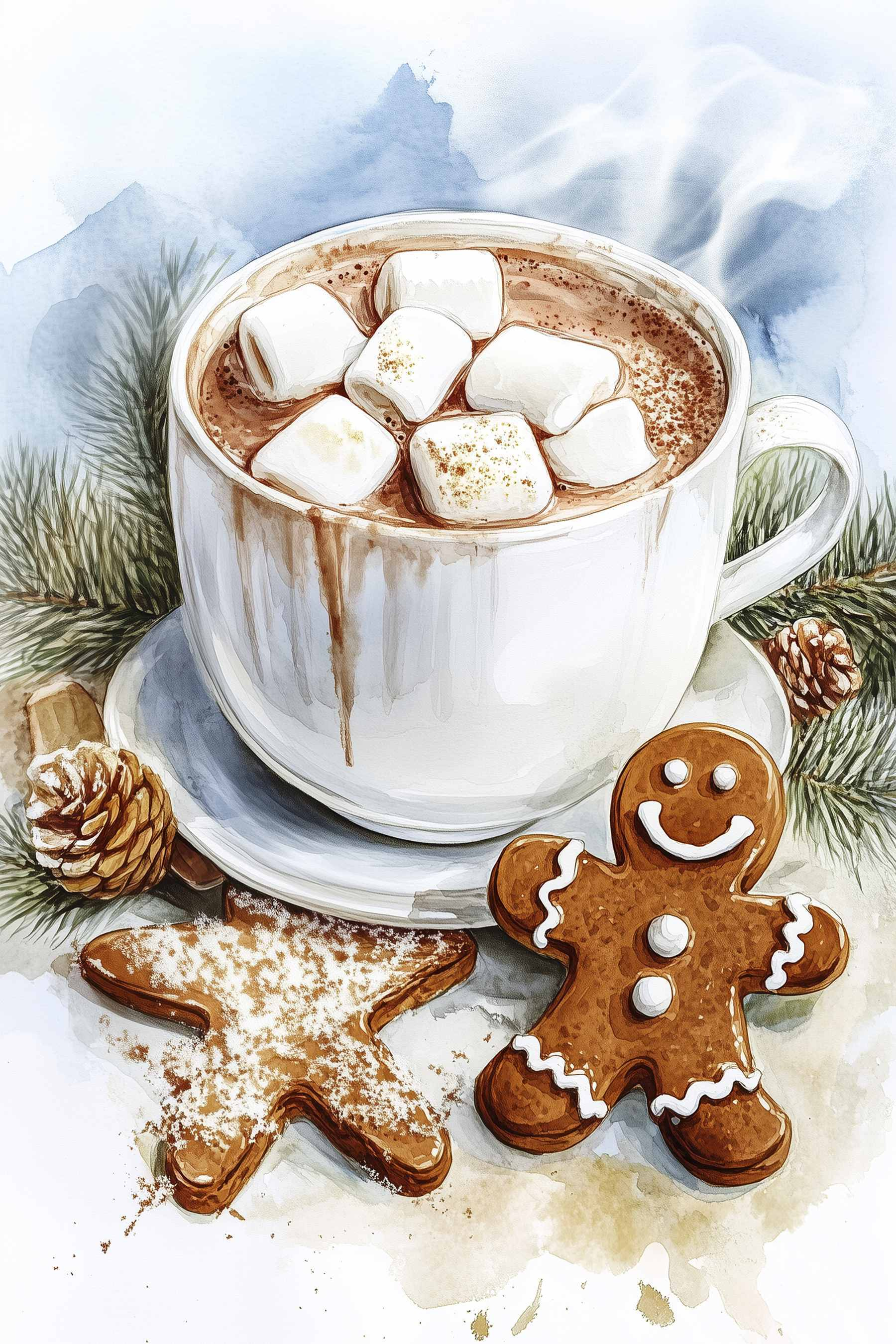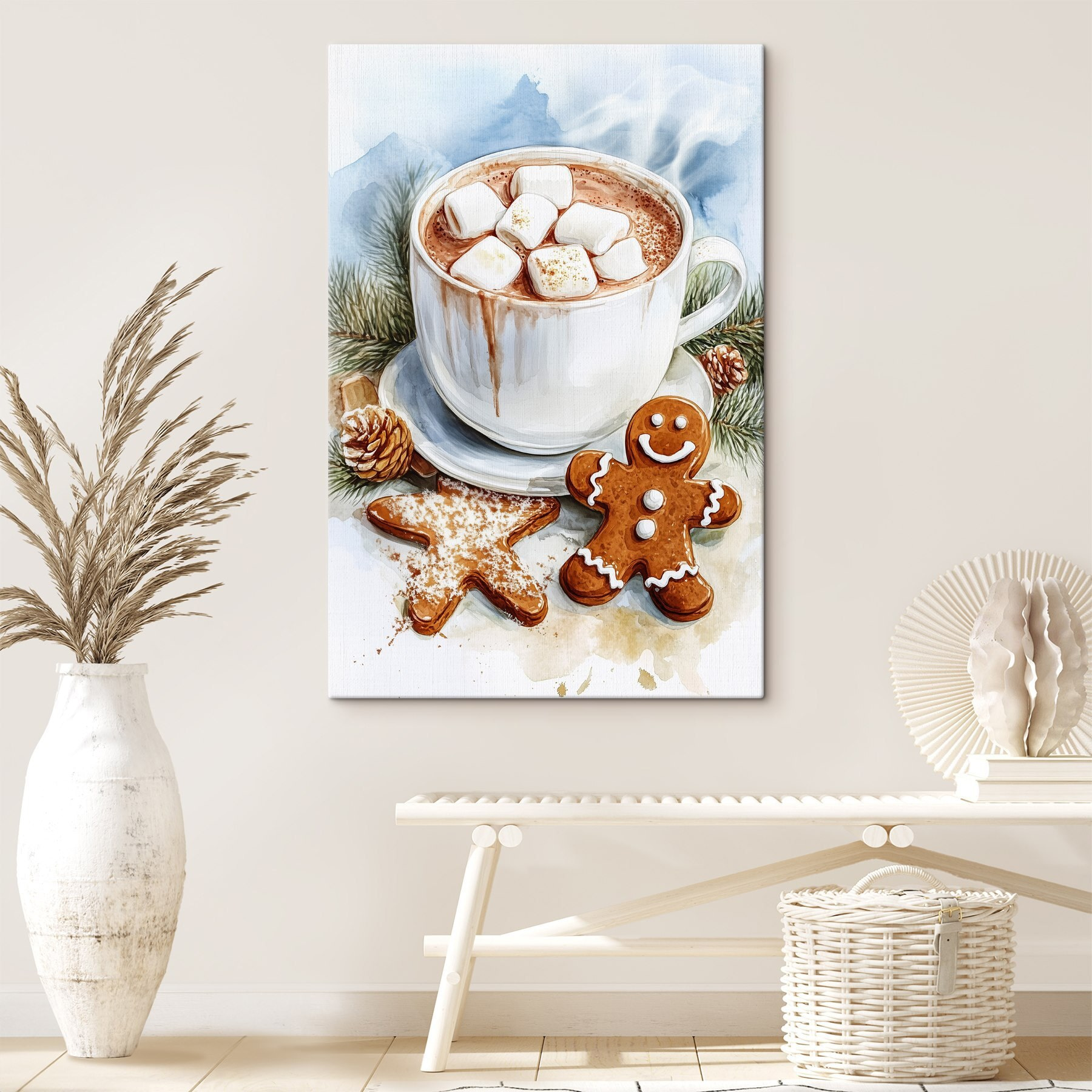 Îmbracă-ți pereții în căldură cu această încântătoare imprimare pe pânză, care prezintă o ceașcă confortabilă de ciocolată caldă, acoperită cu bezele pufoase și însoțită de încântătoare prăjituri din turtă dulce. Imaginează-ți că te cuibărești într-o seară răcoroasă, cu o pătură înfășurată în jurul tău, privind această scenă care practic șoptește “confort”. Culorile blânde și imaginile primitoare aduc o nostalgie dulce – ca cea a sărbătorilor sau a după-amiezilor leneșe. Perfectă pentru o bucătărie sau o zonă de luat masa, este ca și cum ai avea o îmbrățișare caldă pe perete. Cine nu ar zâmbi la asta? Luați o ceașcă și lăsați căldura să curgă!