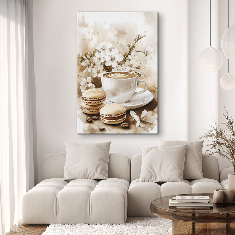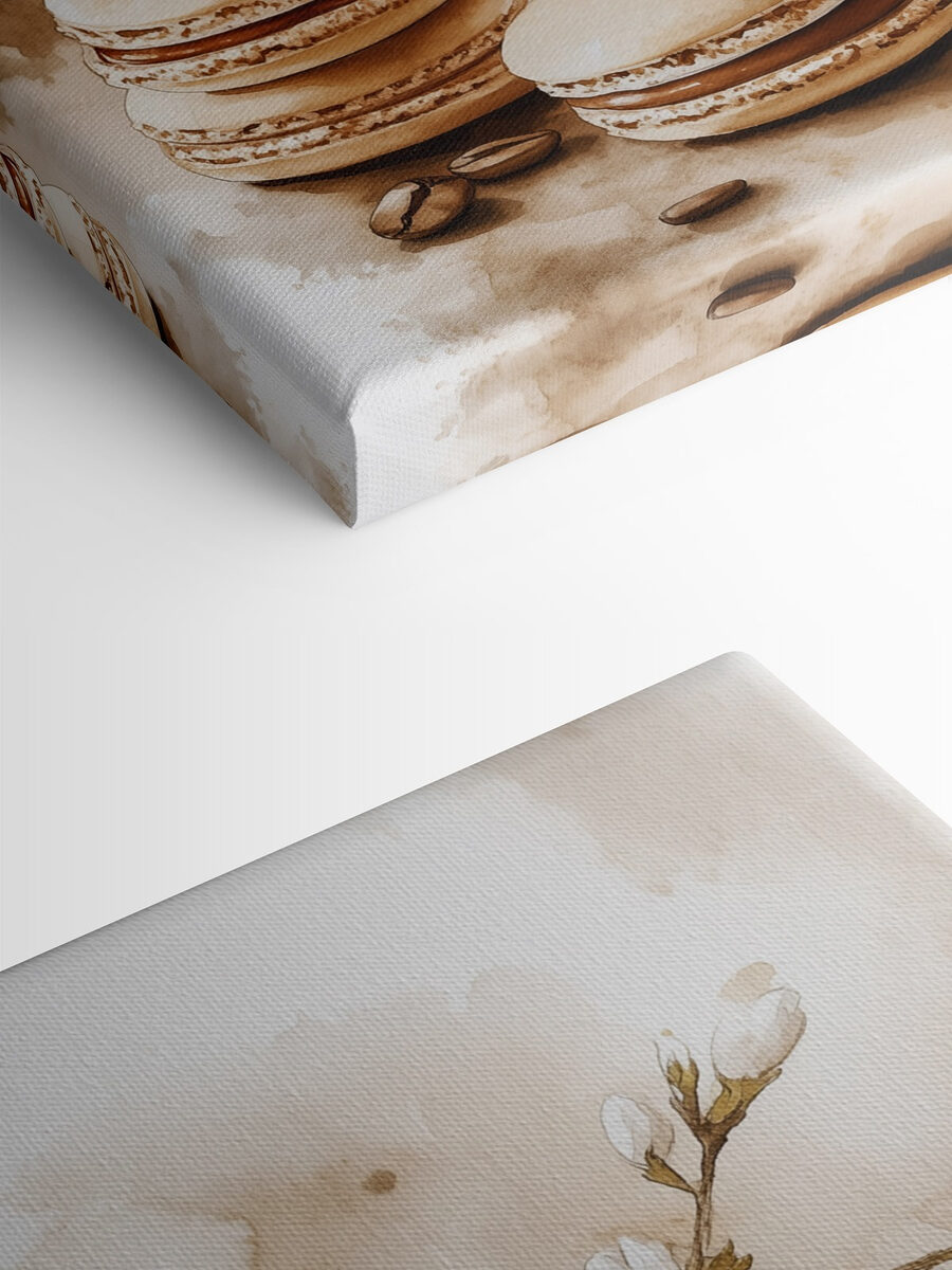 Transformă-ți spațiul cu imprimarea pe pânză “Cup of Coffee and Macaroons” – este ca și cum ai aduce în casa ta o atmosferă confortabilă de cafenea. Imaginați-vă că vă relaxați cu o carte bună în timp ce nuanțele moi de cafea și florile delicate dansează în jurul dumneavoastră. Acele macaroane fermecătoare? Nu sunt doar o plăcere pentru ochi! Această operă de artă șoptește căldură și invită la momente comune. Perfectă pentru o bucătărie sau un colțișor de lectură, ea creează un amestec încântător de confort și stil. În plus, cui nu-i place puțină dulceață în decorul său? Este un deliciu pentru ochi și pentru starea ta de spirit!
