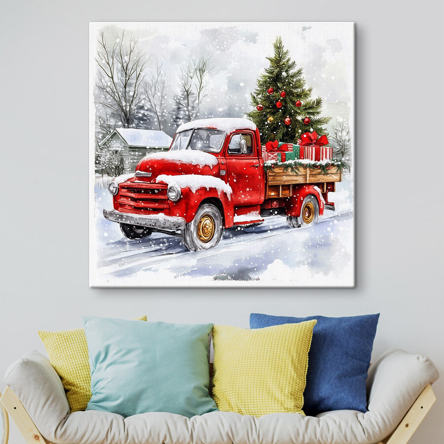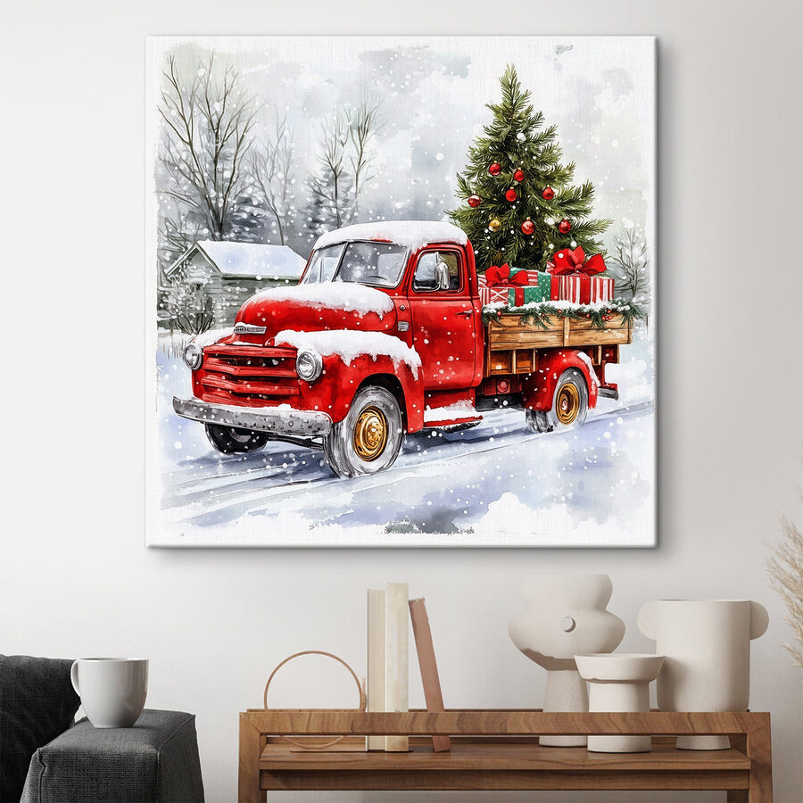 Imaginați-vă că vă îmbrățișați în sufragerie, cu cacao fierbinte în mână, iar această imprimare fermecătoare pe pânză aduce toate vibrațiile festive. “Tablouri Red Truck with a Christmas Tree on the Back” surprinde o scenă clasică care se simte ca o îmbrățișare caldă într-o zi cu zăpadă. Imaginați-vă acest lucru – un camion roșu vechi, încărcat cu un brad de Crăciun strălucitor și cadouri împachetate, vă face să vă gândiți la acele amintiri de iarnă confortabile. Este ca și cum sărbătorile ar fi adunate într-o singură imagine încântătoare! Perfectă pentru a crea o atmosferă veselă, aceasta adaugă un strop de nostalgie oricărui spațiu. Fie că este vorba de o reuniune de familie sau doar de o seară liniștită, această piesă va stârni cu siguranță zâmbete și povești. În plus, să fim sinceri – cui nu-i place un camion cu un copac? Este doza potrivită de veselie festivă care șoptește: “Hai să facem niște amintiri”. Agățați-l și priviți cum spiritul sărbătorilor preia controlul!