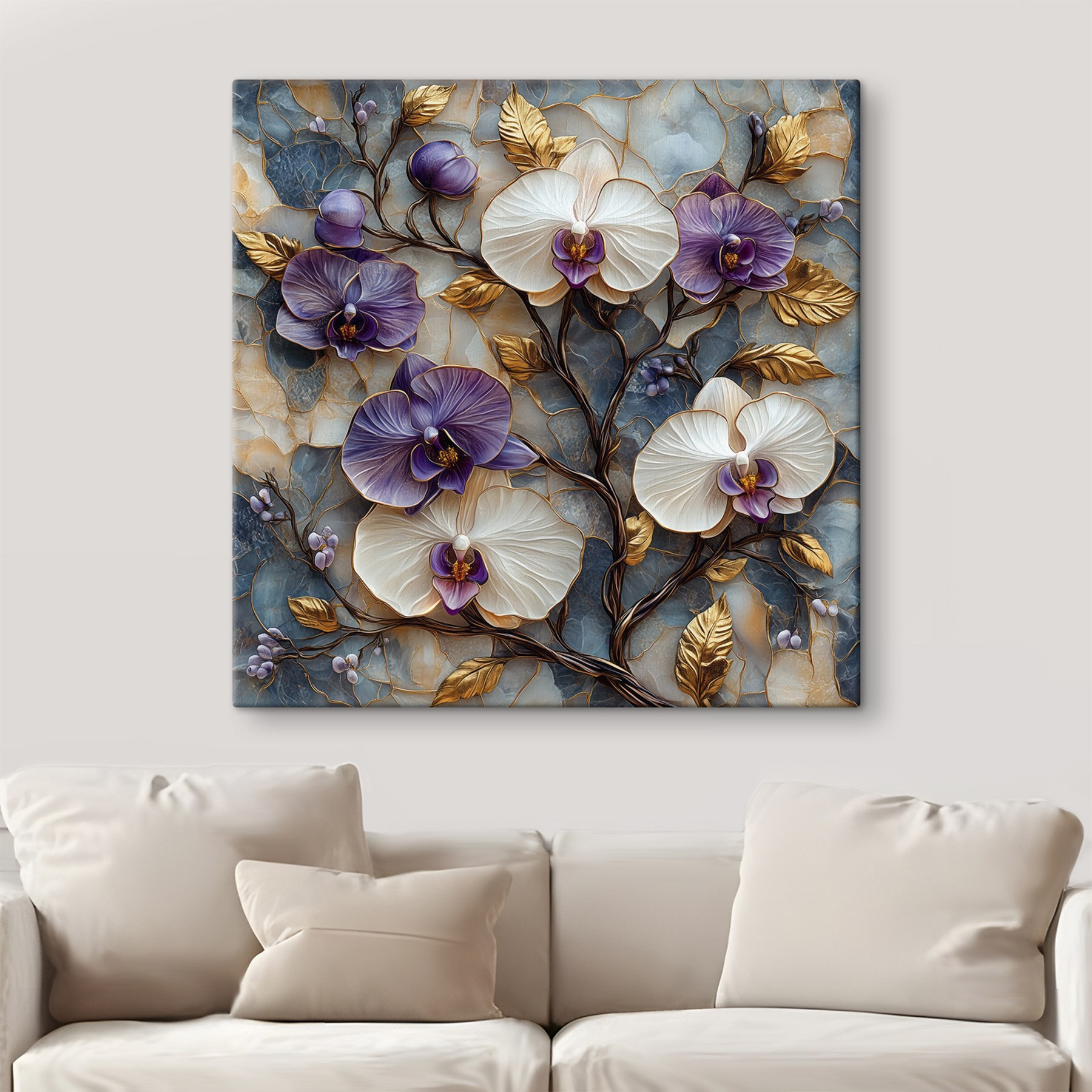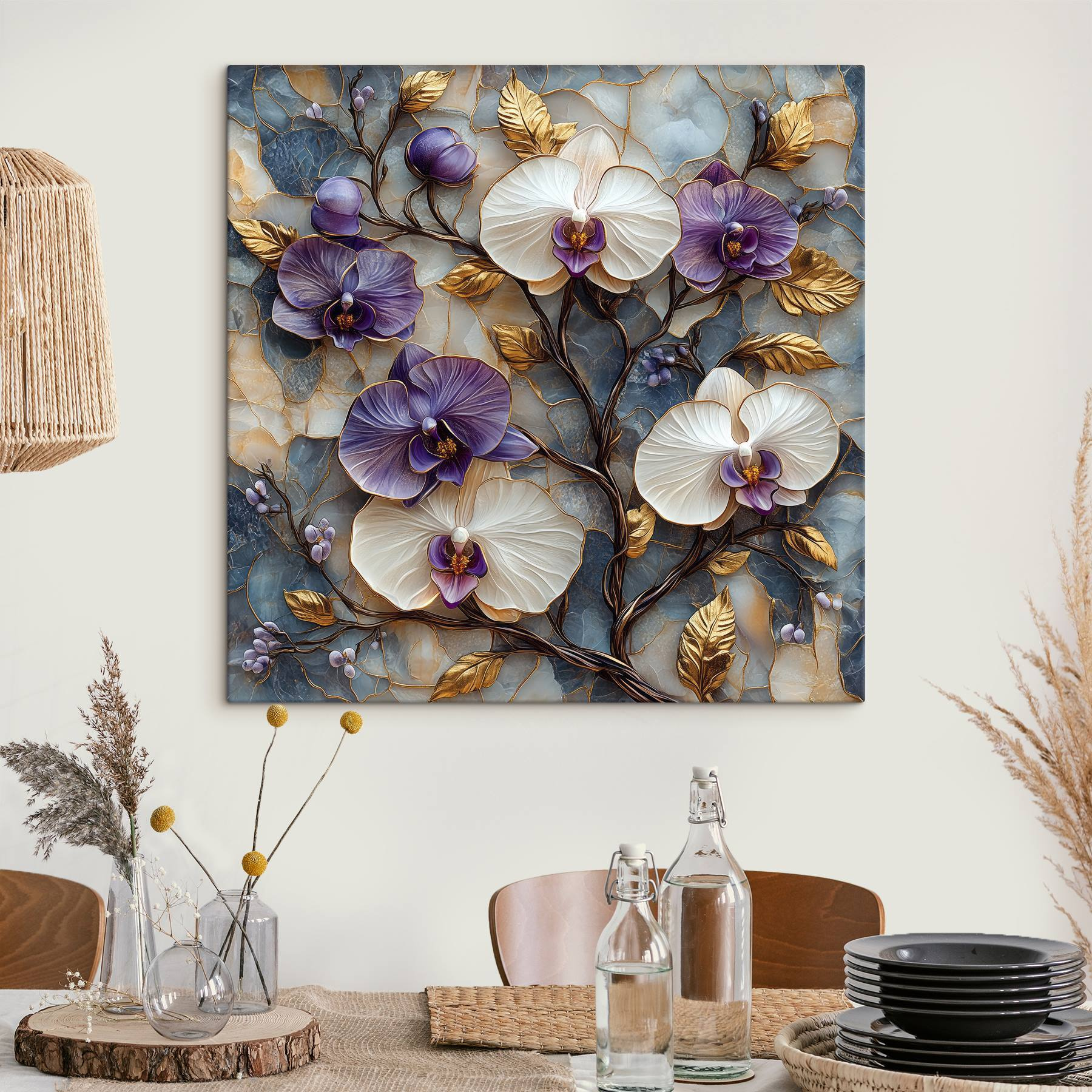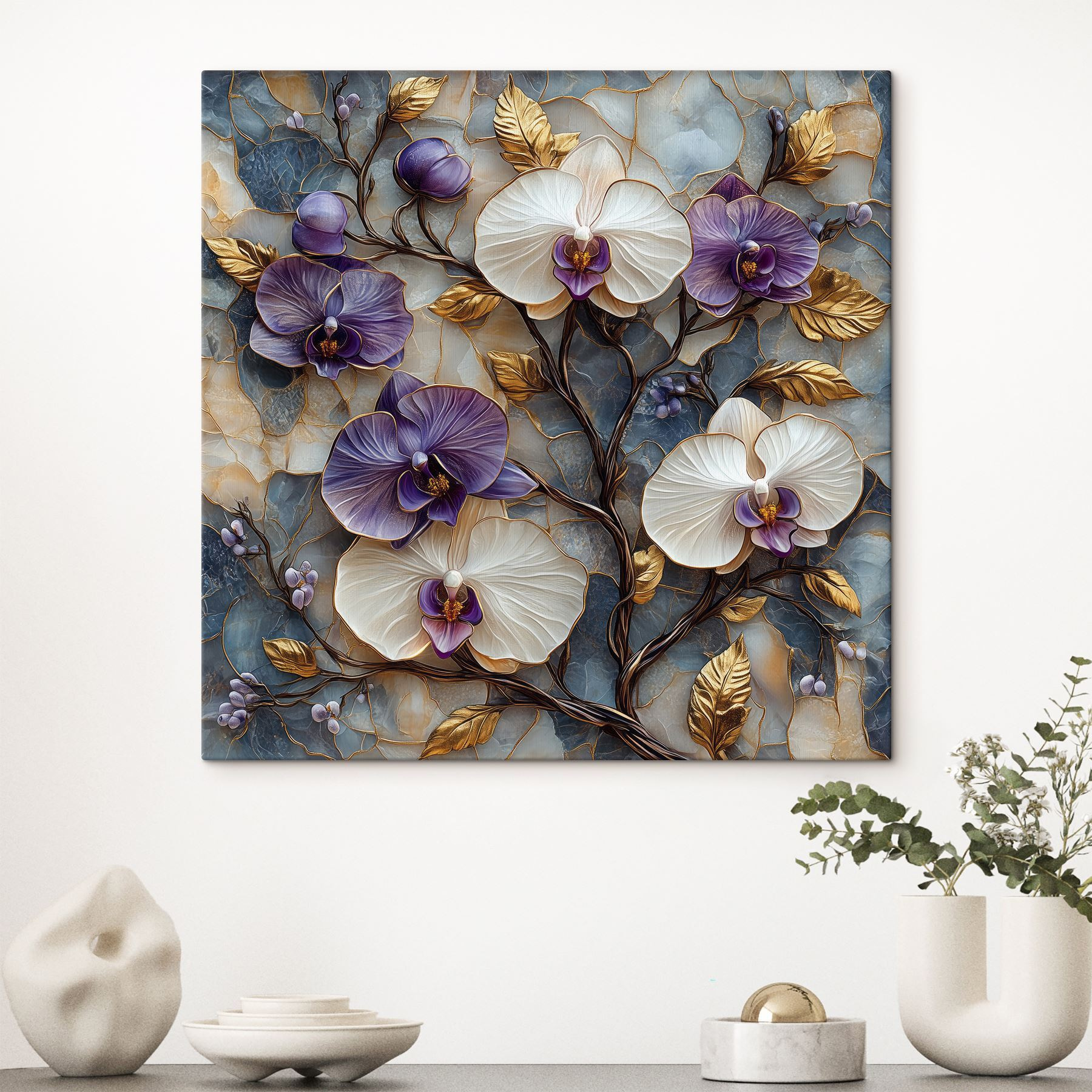 Transformați-vă spațiul cu imprimarea pe pânză “Delicate Orchids in Soft Hues”. Aceste flori uimitoare dansează pe un fundal liniștitor, îmbinând purpuriul profund cu albul blând – nu prea tare, dar cu siguranță nici timid. Imaginează-ți-l agățat în sufrageria ta, stârnind bucurie și conversații de fiecare dată când cineva trece pe lângă el. Este ca și cum natura ar fi decis să facă un cameo în casa ta, aducând o notă de aer liber în interior. Împerecheați-o cu niște perne confortabile și o carte bună și veți obține locul perfect pentru relaxare. Cine ar fi crezut că decorul poate fi atât de confortabil și vibrant în același timp?