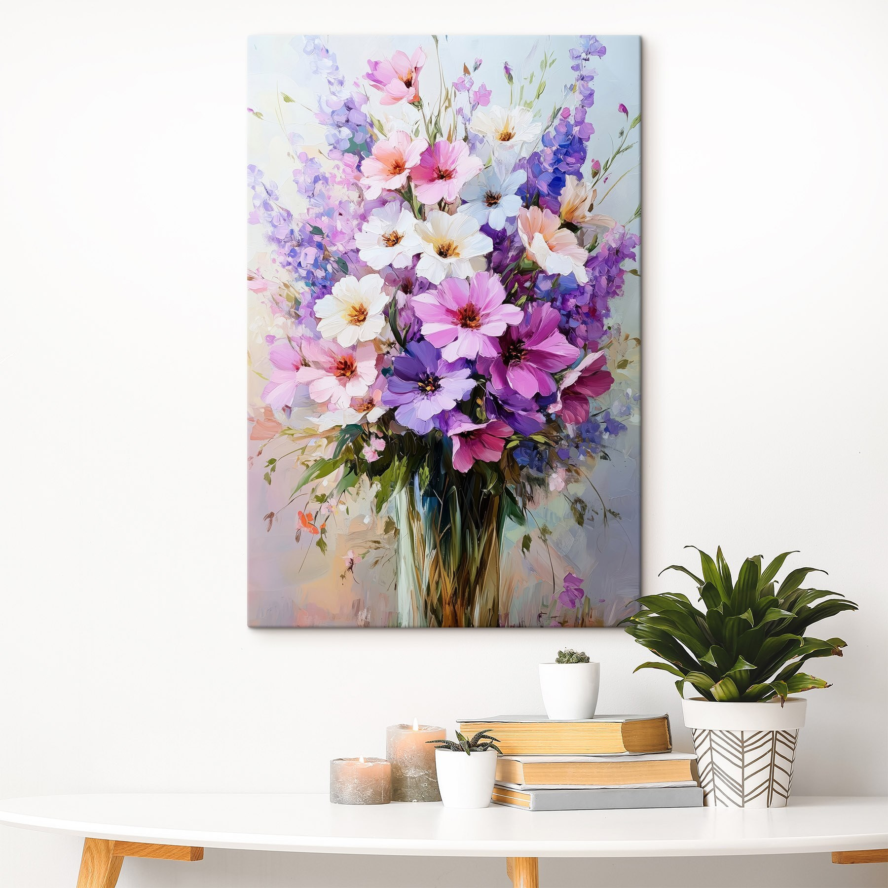 Înveseliți orice cameră cu această imprimare uimitoare pe pânză de flori într-o vază. Este ca și cum ai avea o mini-grădină atârnată pe perete, fără a mai fi nevoie să o uzi! Stropirile de roz, purpuriu și alb creează o atmosferă veselă care poate ridica instantaneu starea de spirit. Imaginați-vă acest lucru: un colț de cafea confortabil, plin de lumina soarelui, și această operă de artă frumoasă care adaugă o notă de natură. Oaspeții vă vor complimenta gusturile, întrebându-se în același timp cum reușiți să vă păstrați casa atât de proaspătă și primitoare. Este un mic strop de bucurie perfect pentru orice iubitor de flori sau pasionat de natură!