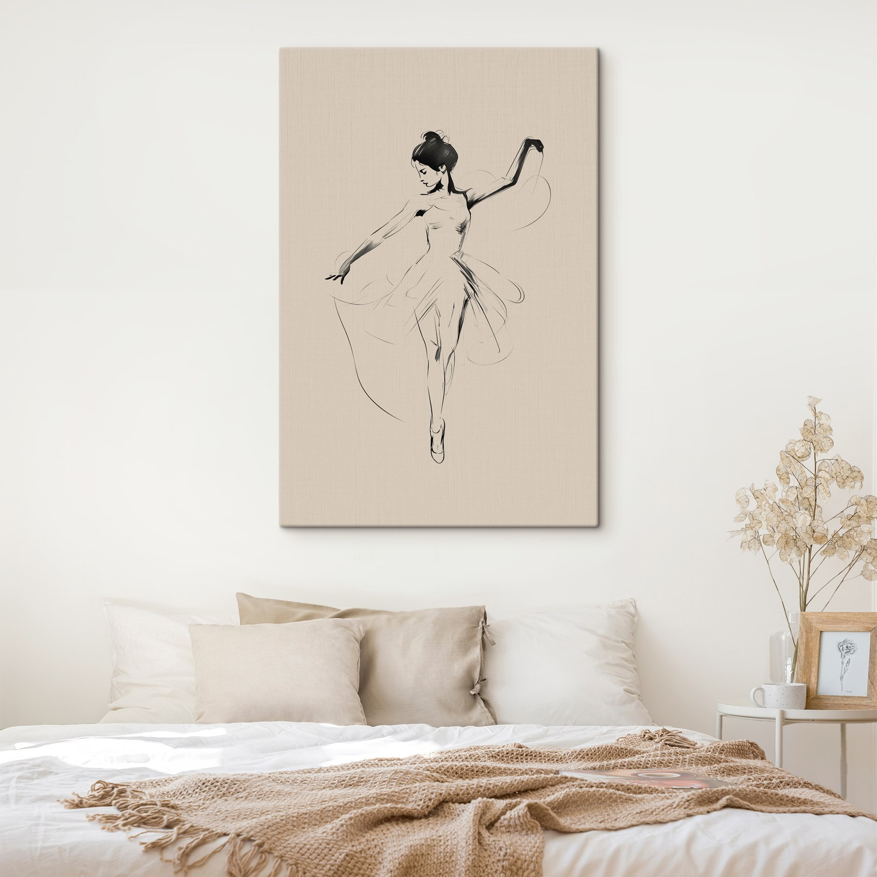 Această imprimare încântătoare pe pânză surprinde o femeie grațioasă dansând, aproape ca și cum ar fi gata să se rotească chiar în afara cadrului! Imaginați-vă această piesă încântătoare agățată în camera dvs. de zi – un starter de conversație instant! Simplitatea schiței alb-negru se îmbină minunat cu fundalul moale, creând o atmosferă calmă care șoptește eleganță. Imaginați-vă că vă așezați pe canapea după o zi lungă și vă uitați la ea – este ca o mini-sesiune de meditație. Perfectă pentru a adăuga o notă de farmec artistic oricărui spațiu, ea ar putea chiar să vă inspire un dans improvizat. Deci, de ce să nu lăsați această imprimare să aducă puțin ritm și fericire pe pereții dumneavoastră?