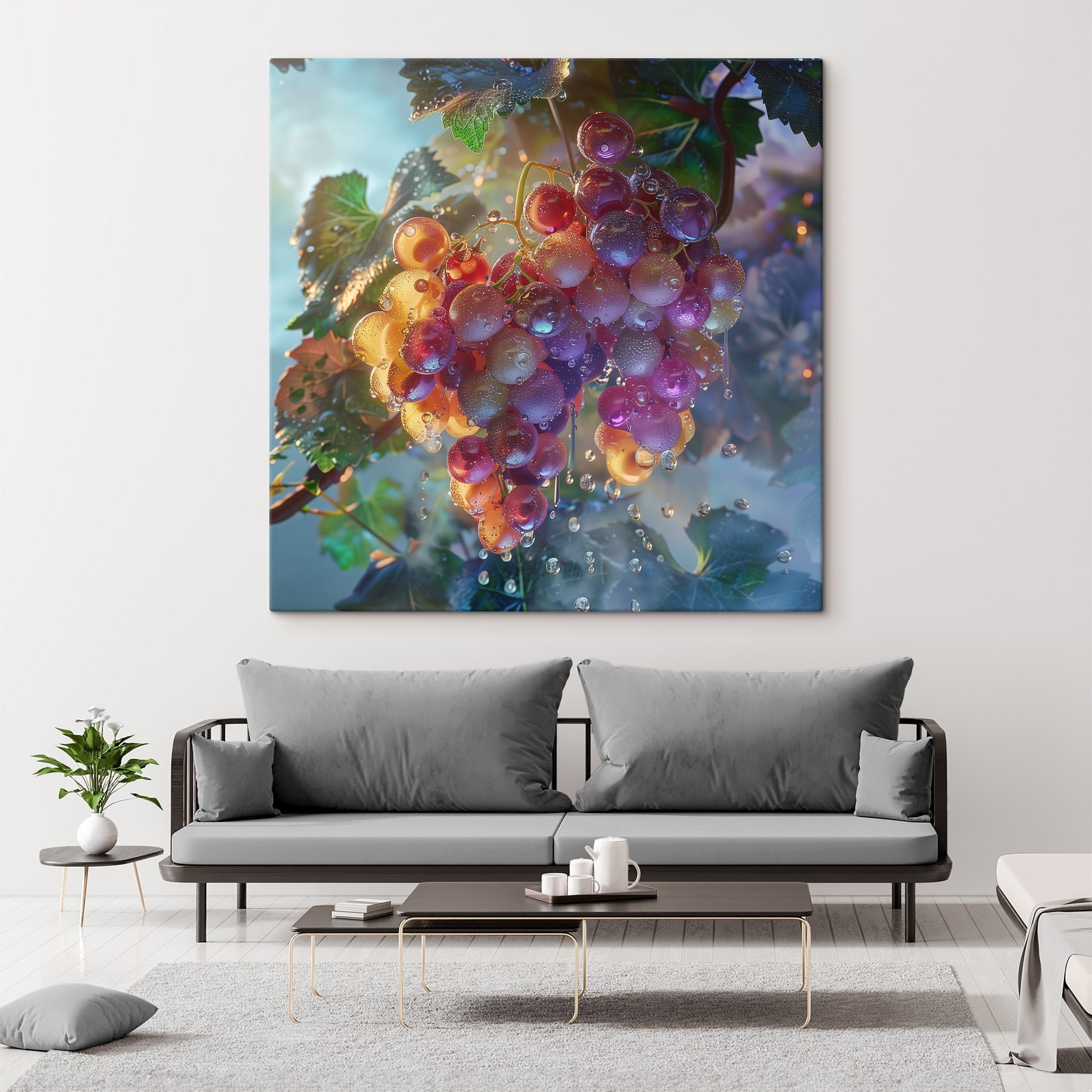 Adăugați un strop de culoare în orice cameră cu această uimitoare imprimare pe pânză “Buchet de struguri cu picături de apă”. Imaginați-vă că pășiți în spațiul dvs. și simțiți instantaneu că v-ați rătăcit într-o podgorie însorită. Acești struguri suculenți și strălucitori strigă practic prospețime – fiecare picătură prinde lumina exact cum trebuie. Este aproape ca și cum ai putea simți în aer notele dulci ale vinului, nu-i așa? Perfectă pentru bucătării sau zone de luat masa, această piesă îmbină frumusețea naturii cu o notă de eleganță. În plus, ar putea inspira o seară spontană cu vin. Cui nu-i place asta? Așadar, agățați-o și lăsați strugurii să aducă un zâmbet la fiecare întâlnire.