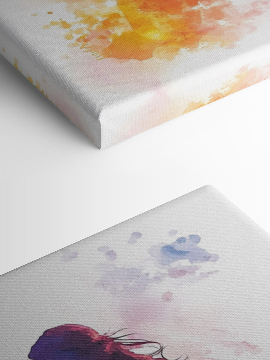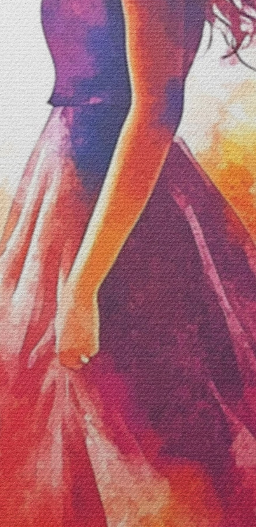 Pregătiți-vă să fiți captivați de această imprimare încântătoare pe pânză, “Woman in a Dress”. Imediat, aduce o notă de fantezie și farmec în orice spațiu. Amestecul de culori vibrante și tușe blânde de pensulă captează o scenă de vis care se simte ca un apus de soare cald. Este ca și cum rochia curge într-o briză ușoară, invitând la visări cu ochii deschiși despre plimbări magice și aventuri spontane.