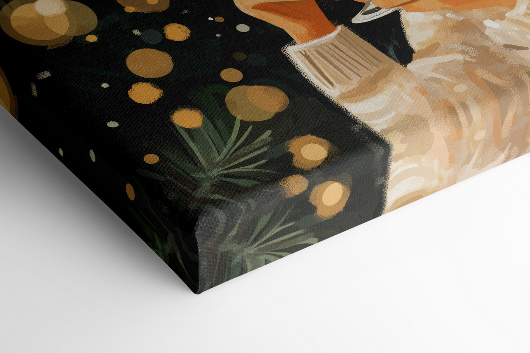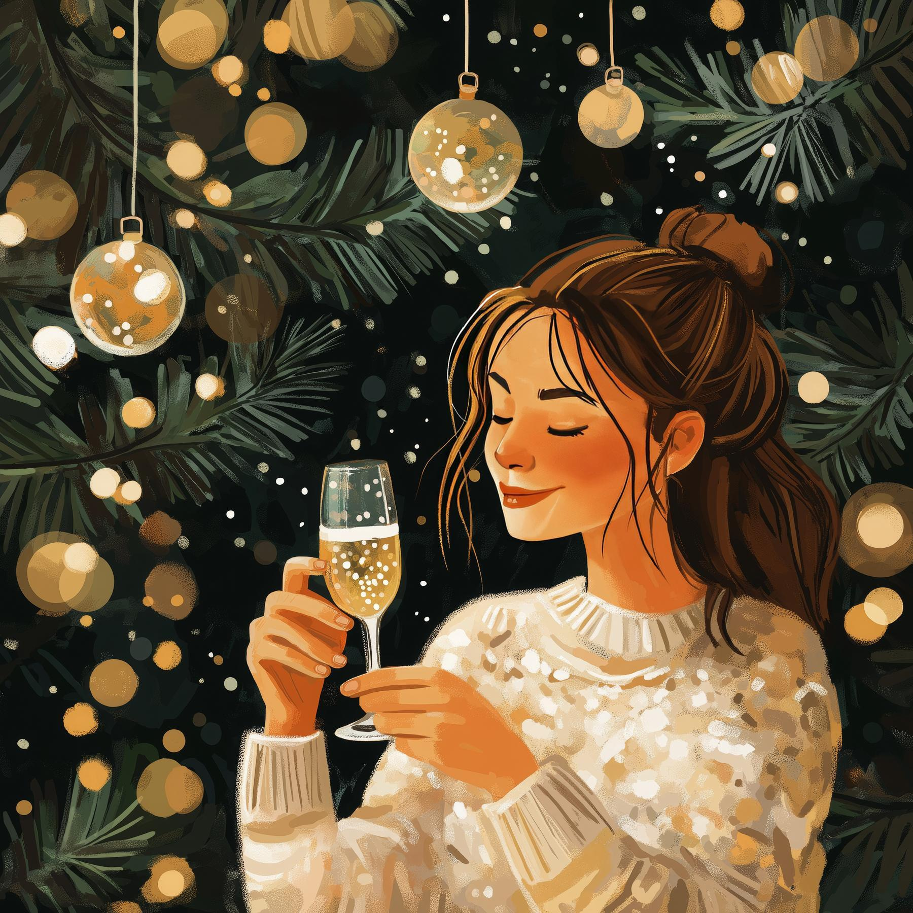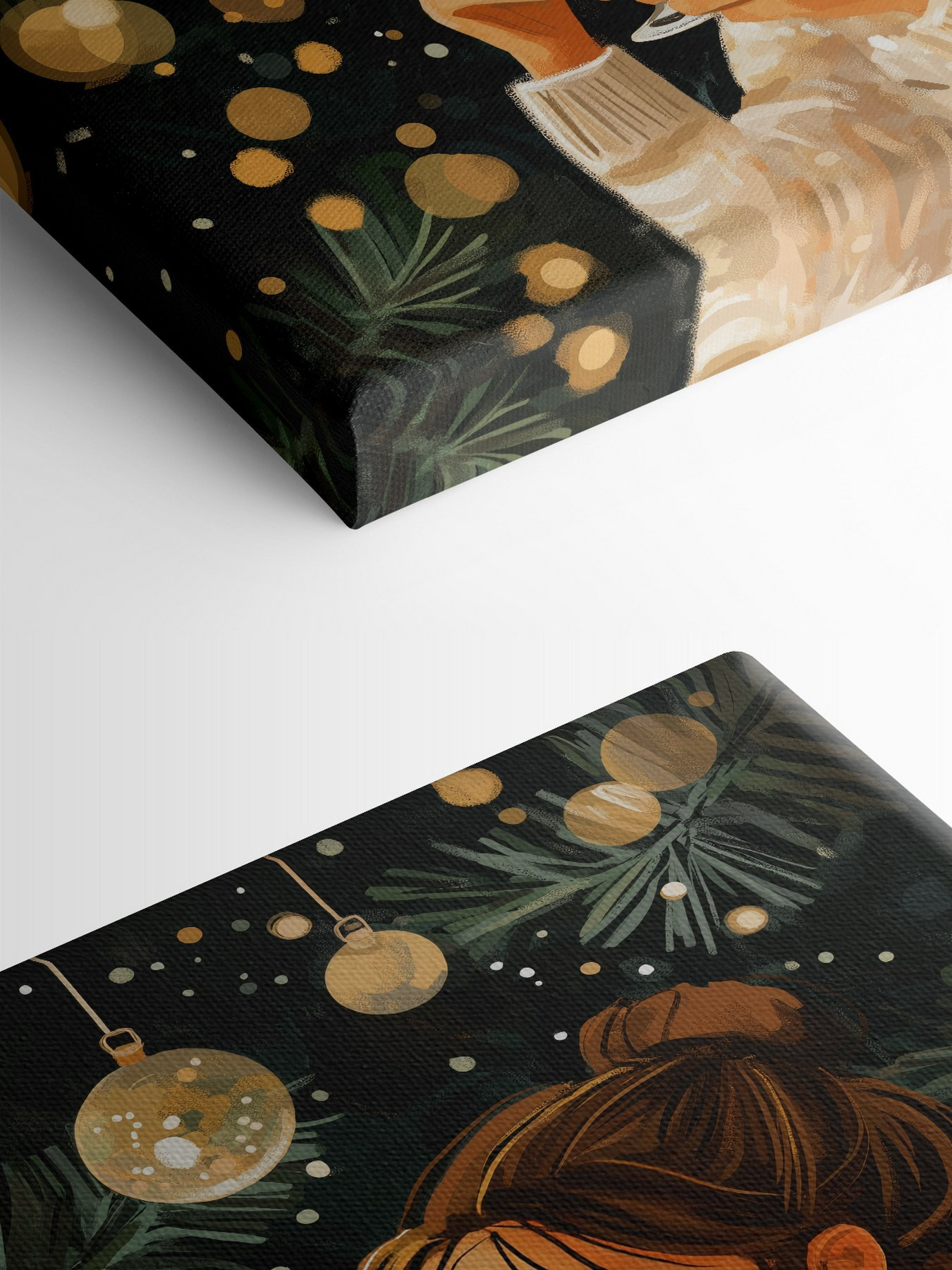 Imaginați-vă că vă simțiți confortabil în sufragerie, cu lumini strălucitoare în jur, iar acest minunat print pe pânză fură spectacolul. “Tablouri Woman holding a glass of champagne under a Christmas tree” surprinde perfect acest spirit vesel. Strălucirea blândă a ornamentelor și zâmbetul senin al femeii creează o atmosferă caldă și primitoare, făcând să pară că fiecare zi este o sărbătoare. Imaginați-vă o reuniune a prietenilor – râsete, pahare ciocnite și veselie de sărbători umplând aerul. Este ca o îmbrățișare pentru pereții tăi, amintindu-le tuturor să facă o pauză și să savureze momentele care contează. Adăugați o notă de strălucire spațiului dvs. și lăsați festivitățile să înceapă!