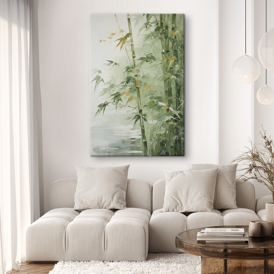 Transformați orice spațiu într-o oază de liniște cu această imprimare uimitoare pe pânză a unui copac de bambus. Imaginați-vă că intrați într-o cameră și sunteți întâmpinați de legănarea blândă a frunzelor verzi, șoptindu-vă liniște și calm. Nuanțele suave creează un vibe relaxant – perfect pentru relaxare după o zi lungă sau pentru inspirarea creativității în timpul orelor de lucru. Această piesă nu este doar decor; este ca și cum ai aduce o felie de natură în interior. Prietenii vor dori să afle secretul dvs. pentru o astfel de estetică senină și s-ar putea să afirmați că aveți degetul mare verde! Fie că se află într-un colț confortabil sau deasupra unei canapele elegante, această artă șoptește povești despre frumusețea naturii. Îmbrățișați eleganța!