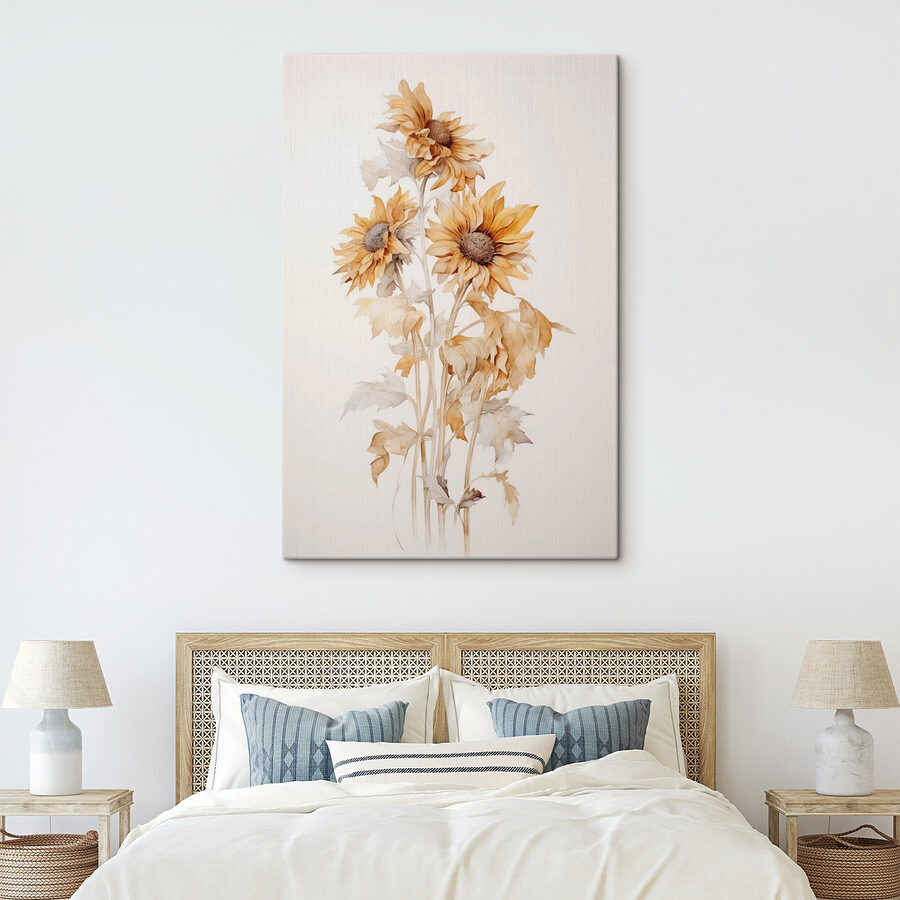 Înveseliți orice cameră cu această imprimare fermecătoare pe pânză cu floarea-soarelui pe un fundal alb strălucitor. Este ca și cum ai avea o bucată de soare care nu se ofilește niciodată. Imaginați-vă-o agățată într-un living confortabil – oaspeții nu se pot abține să nu zâmbească de fiecare dată când trec pe lângă ea. Nuanțele blânde aduc un sentiment de calm, făcându-l perfect pentru acele duminici leneșe petrecute sorbind cafea. În plus, imaginați-vă cum se joacă cu lumina dimineții, aruncând umbre blânde care dansează pe pereți. Această piesă nu este doar artă; este un memento zilnic că frumusețea este peste tot, așteptând să fie admirată.