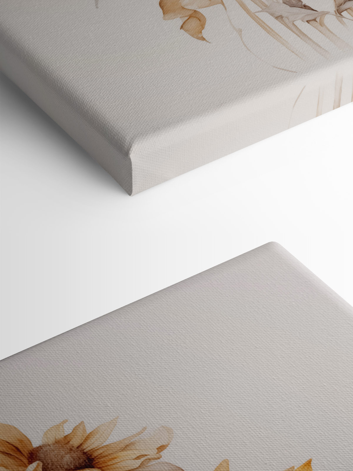 Înveseliți orice cameră cu această imprimare fermecătoare pe pânză cu floarea-soarelui pe un fundal alb strălucitor. Este ca și cum ai avea o bucată de soare care nu se ofilește niciodată. Imaginați-vă-o agățată într-un living confortabil – oaspeții nu se pot abține să nu zâmbească de fiecare dată când trec pe lângă ea. Nuanțele blânde aduc un sentiment de calm, făcându-l perfect pentru acele duminici leneșe petrecute sorbind cafea. În plus, imaginați-vă cum se joacă cu lumina dimineții, aruncând umbre blânde care dansează pe pereți. Această piesă nu este doar artă; este un memento zilnic că frumusețea este peste tot, așteptând să fie admirată.