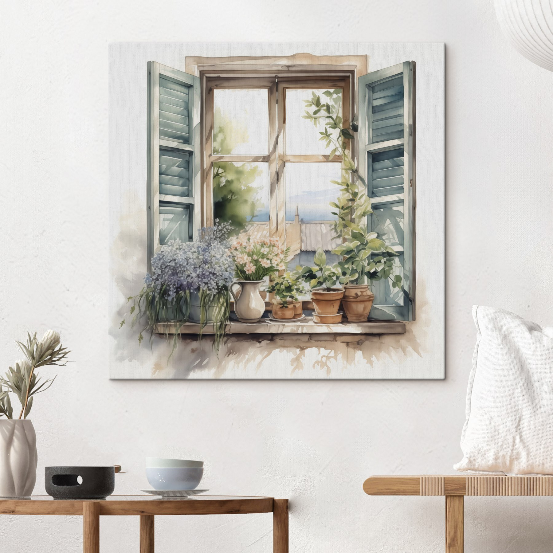 Transformați-vă spațiul cu această încântătoare pictură în acuarelă reprezentând o fereastră plină de ghivece cu plante. Imaginați-vă că vă plimbați zilnic pe lângă această scenă fermecătoare – lumina soarelui pătrunzând prin obloane, iar aceste plante vibrante șoptindu-vă secretele frumuseții naturii. Fiecare floare și frunză pare aproape vie, invitându-vă să vă opriți și să respirați adânc. Este ca o mini-grădină, care nu necesită udare! Perfectă pentru colțuri confortabile sau pereți care au nevoie de o notă de prospețime, această operă de artă aduce veselie fără efort. La urma urmei, cine nu dorește o mică felie de natură în interior?