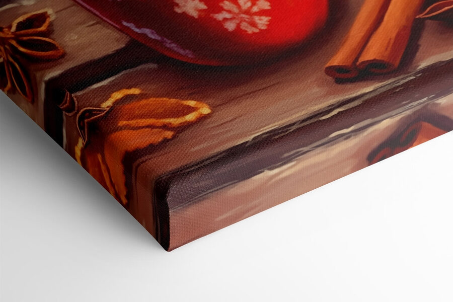 Imaginați-vă că vă relaxați într-o seară răcoroasă cu această încântătoare imprimare pe pânză care prezintă două fermecătoare căni roșii, împodobite cu modele albe, care abia așteaptă să își verse secretele calde și picante. Amplasată lângă un strop de scorțișoară și anason stelat, aceasta redă imaginea perfectă a confortului și a mulțumirii. Agățați-o în bucătărie sau în sufragerie și observați cum vă înviorează instantaneu starea de spirit – la fel ca prima înghițitură de cacao fierbinte! Nu este doar artă; este o invitație de a savura micile momente ale vieții, precum băuturile calde și prăjiturile de casă într-o seară de iarnă. Cine nu s-ar simți un pic mai vesel uitându-se la asta?