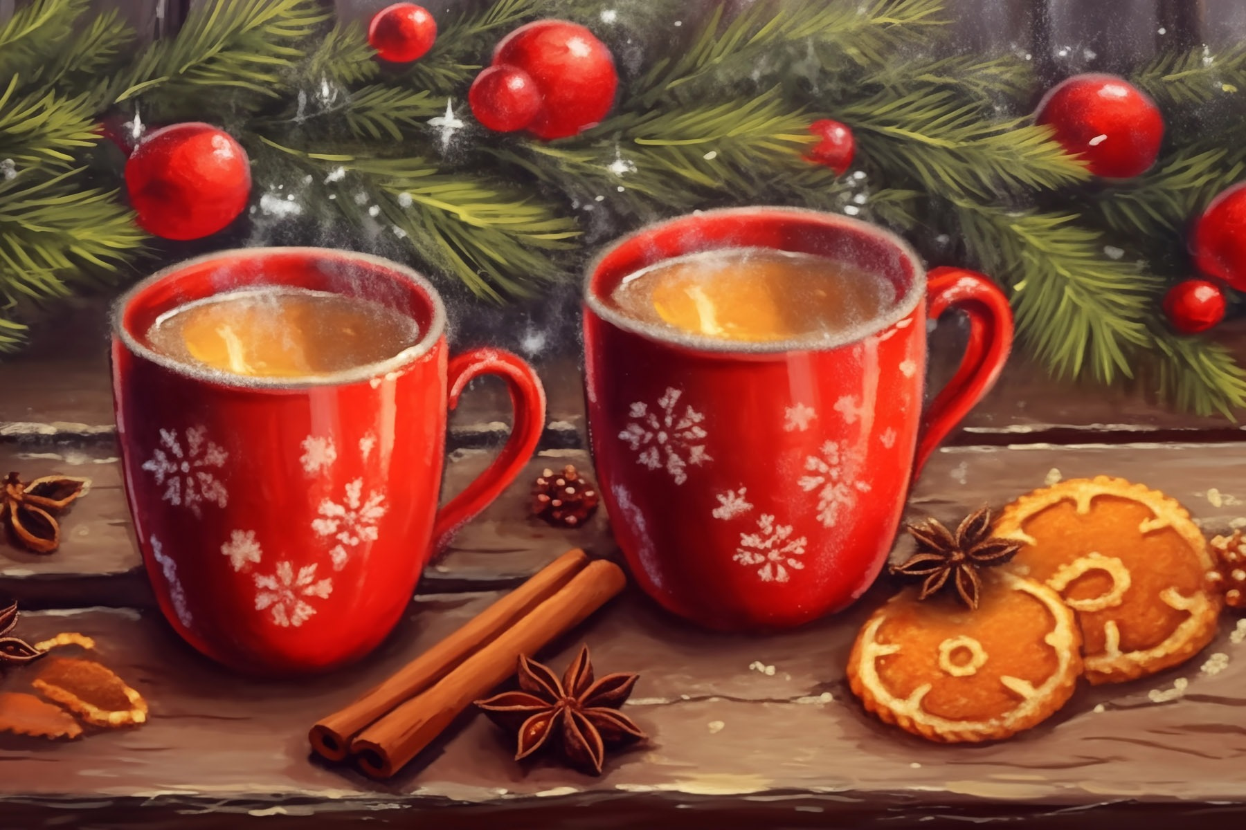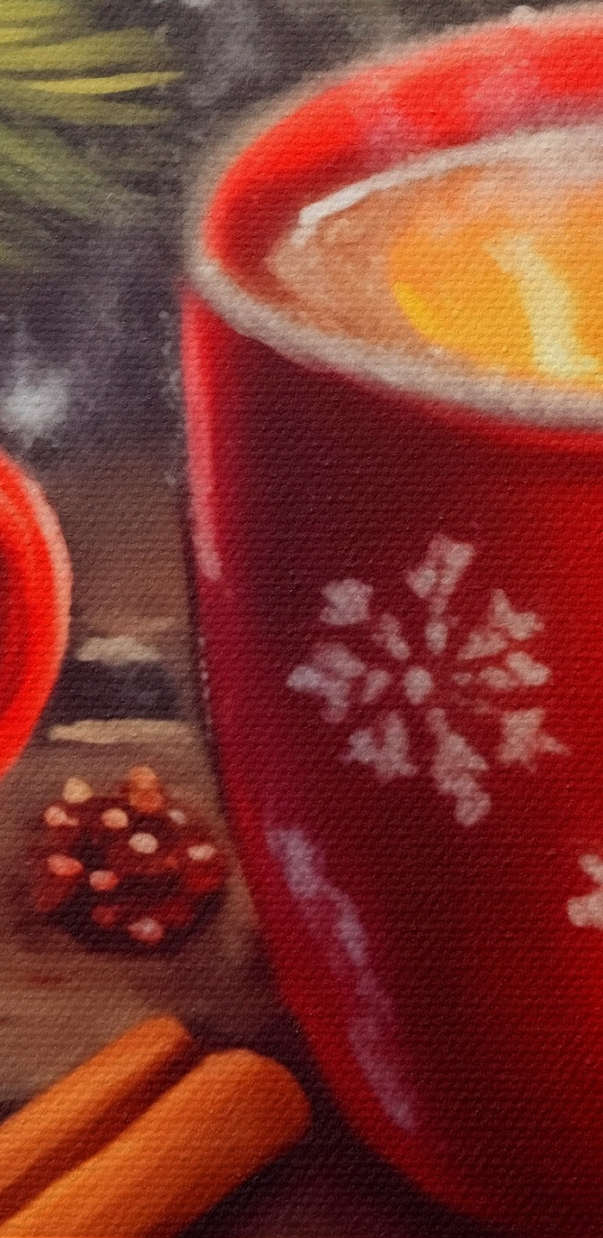 Imaginați-vă că vă relaxați într-o seară răcoroasă cu această încântătoare imprimare pe pânză care prezintă două fermecătoare căni roșii, împodobite cu modele albe, care abia așteaptă să își verse secretele calde și picante. Amplasată lângă un strop de scorțișoară și anason stelat, aceasta redă imaginea perfectă a confortului și a mulțumirii. Agățați-o în bucătărie sau în sufragerie și observați cum vă înviorează instantaneu starea de spirit – la fel ca prima înghițitură de cacao fierbinte! Nu este doar artă; este o invitație de a savura micile momente ale vieții, precum băuturile calde și prăjiturile de casă într-o seară de iarnă. Cine nu s-ar simți un pic mai vesel uitându-se la asta?