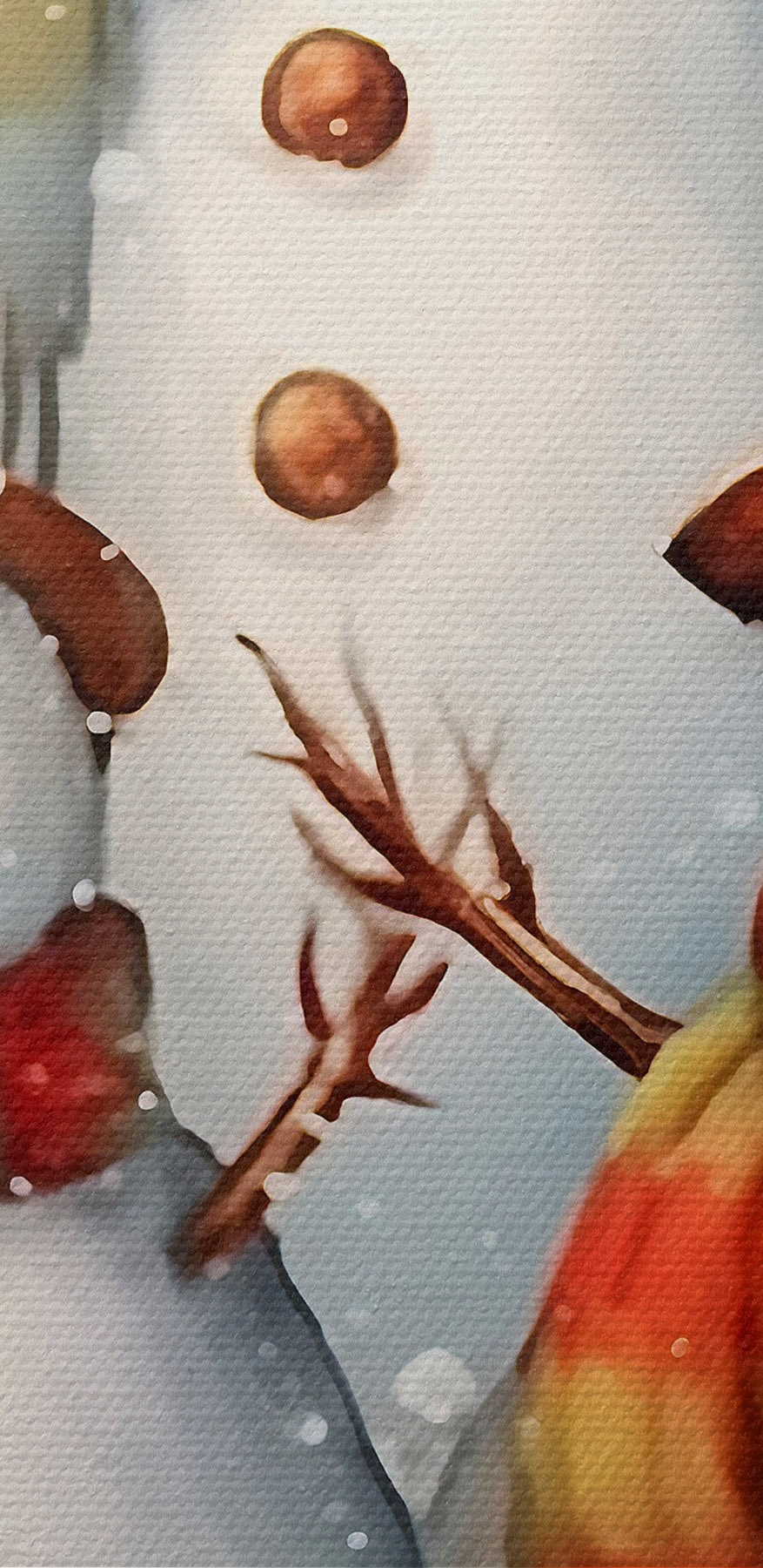 Imaginați-vă un tărâm al minunilor de iarnă chiar în camera dvs. de zi! Această imprimare veselă pe pânză prezintă un trio de oameni de zăpadă încântători, toți îmbrăcați în eșarfe colorate și pălării fermecătoare, stând mândri într-un peisaj înzăpezit. Parcă așteaptă o bătaie cu bulgări de zăpadă sau o ceașcă confortabilă de cacao. Culorile suave și ninsoarea blândă adaugă o notă confortabilă, evocând acele vibrații magice de vacanță. Agățați-o și cu siguranță va stârni conversații calde și o nostalgie dulce. Perfect pentru a lumina un colț plictisitor sau pentru a adăuga un strop de bucurie oricărui spațiu. Cine nu ar zâmbi la aceste fețe prietenoase?
