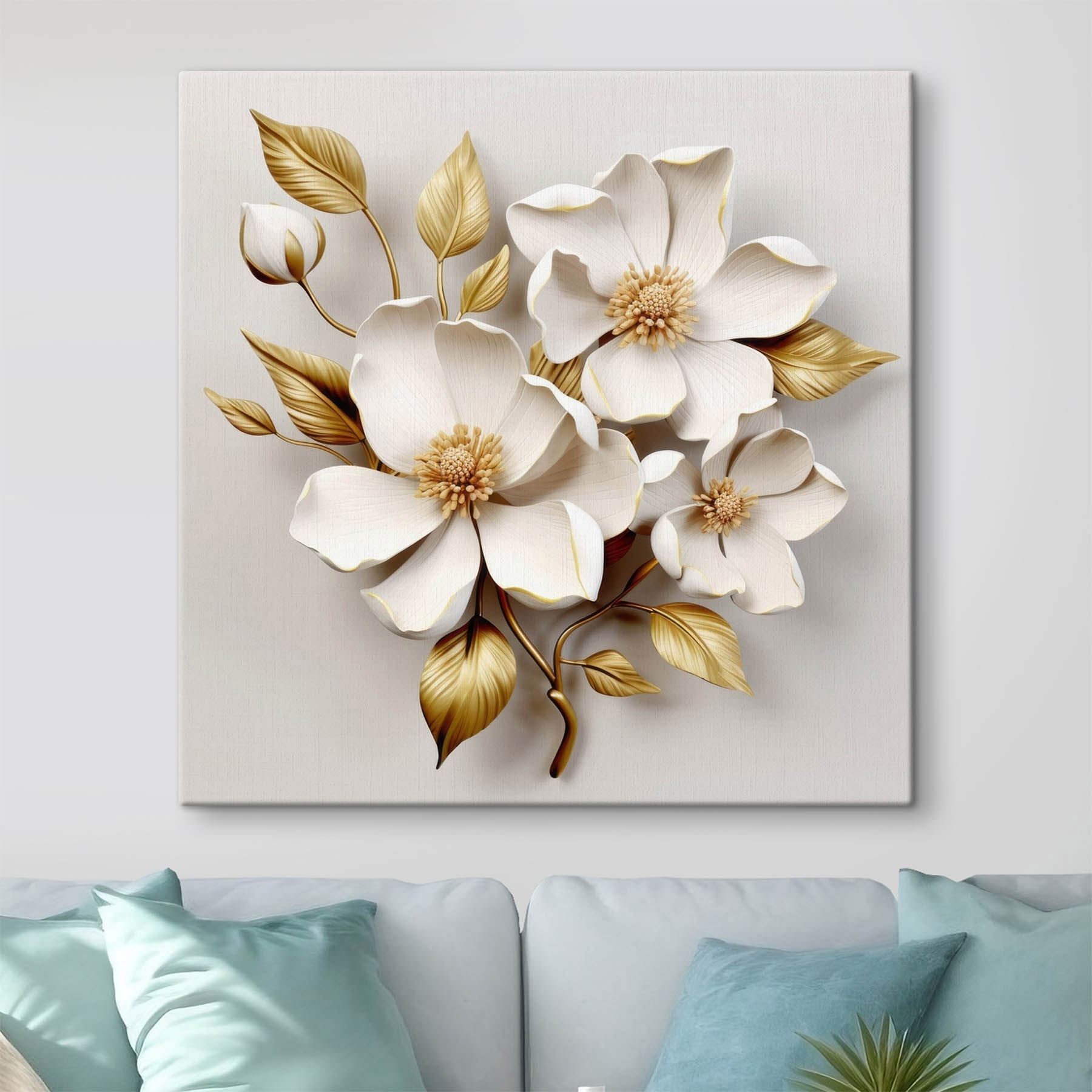 Această piesă nu este doar despre aspect; ea invită la căldură și liniște, făcând spațiul să se simtă perfect. Imaginați-vă-o într-un colț de lectură confortabil, scăldat în lumină naturală – perfect pentru acele după-amieze leneșe cu o carte bună (sau trei). Astfel de artă florală adaugă o notă de frumusețe naturală în interior și cine nu are nevoie de un pic mai multă veselie în viața sa?
