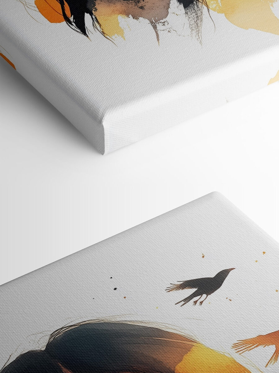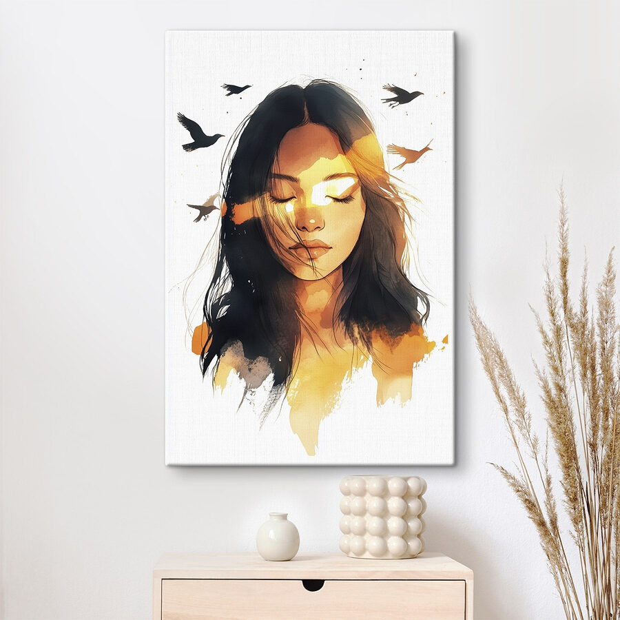 Transformați orice perete într-o evadare de vis cu “Mysterious Beauty in Warm Hues”. Această imprimare pe pânză prezintă o figură captivantă înconjurată de o pată de culori care amintește de un apus de soare, evocând sentimente de liniște și inspirație. Imaginați-vă că veniți acasă la această lucrare de artă – vă atrage ca un foc de tabără confortabil, invitându-vă să vă relaxați după o zi lungă. Amestecul delicat de tonuri calde nu numai că luminează spațiul, dar stârnește și conversații. Este perfect pentru momentele liniștite de reflecție sau pentru atunci când prietenii trec pe aici. Perfect echilibrat, acesta șoptește eleganță fără a fi prea tare. Cine ar fi crezut că o pânză poate fi atât de liniștitoare?