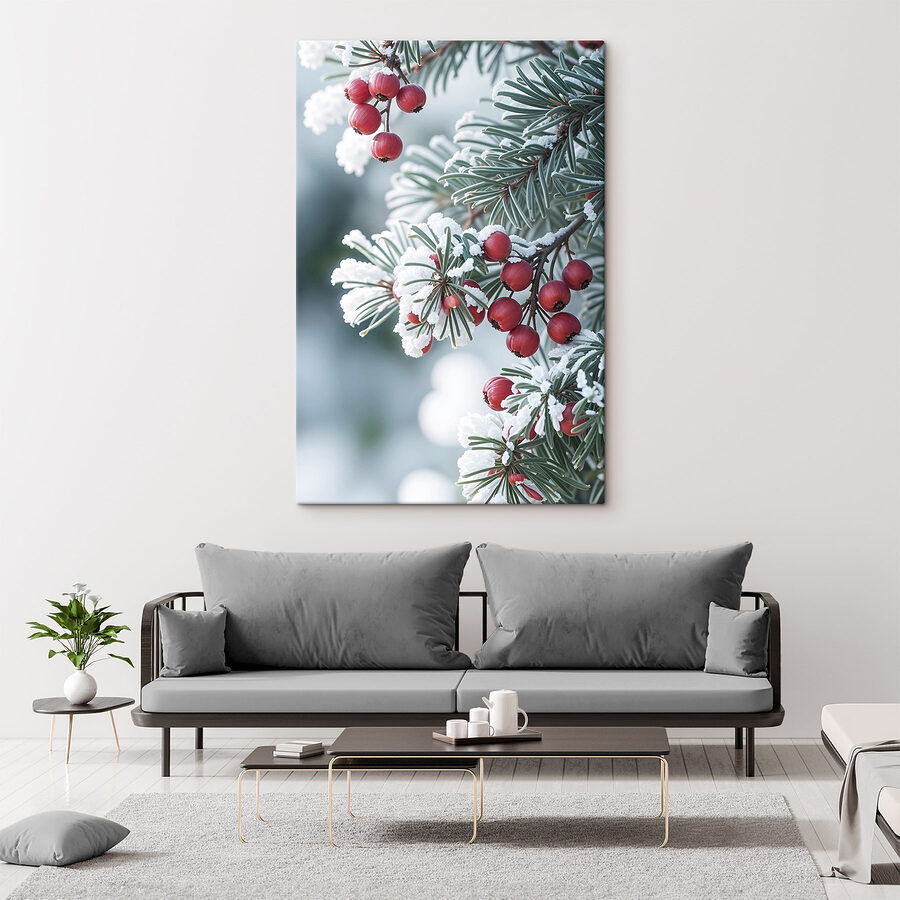 Transformați-vă spațiul într-o țară a minunilor de iarnă cu “Tablouri Winter Berries on Frosted Branches”. Aceste fructe de pădure roșii vibrante ies în evidență pe un fundal înghețat, aducând instantaneu un vibe confortabil, festiv. Imaginați-vă că agățați acest tablou în camera dvs. de zi – toată lumea trebuie să se oprească și să-l admire. Este ca un mic cadou surpriză al naturii învelit în îngheț. În plus, este o sursă perfectă de conversație!