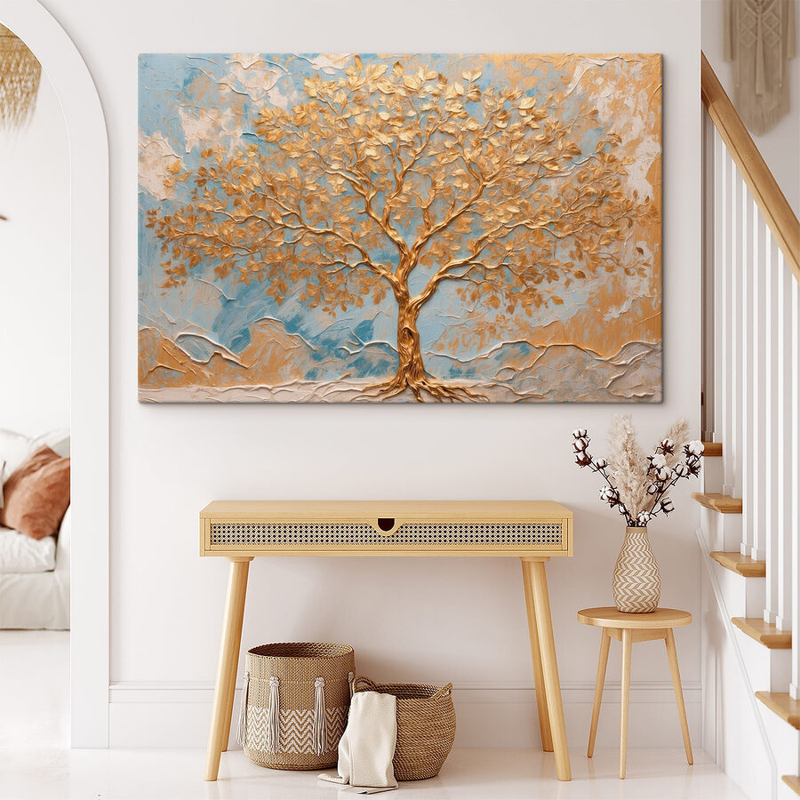 Transformați orice cameră cu farmecul captivant al acestui print artistic pe pânză. Imaginați-vă că faceți un pas înapoi și simțiți cum vă cuprinde liniștea, ca o briză blândă care foșnește printre ramuri. Copacul, care stă mândru pe un fundal senin, însuflețește orice perete, stârnind momente de contemplare sau oferind pur și simplu o distracție plăcută în timpul agitației zilnice. Nu este doar o operă de artă; șoptește povești despre natură, adăugând în același timp un strop de căldură și culoare. Perfectă pentru colțurile confortabile sau pentru acel perete căruia i-ar prinde bine puțină personalitate – această imprimare vă acoperă spatele!