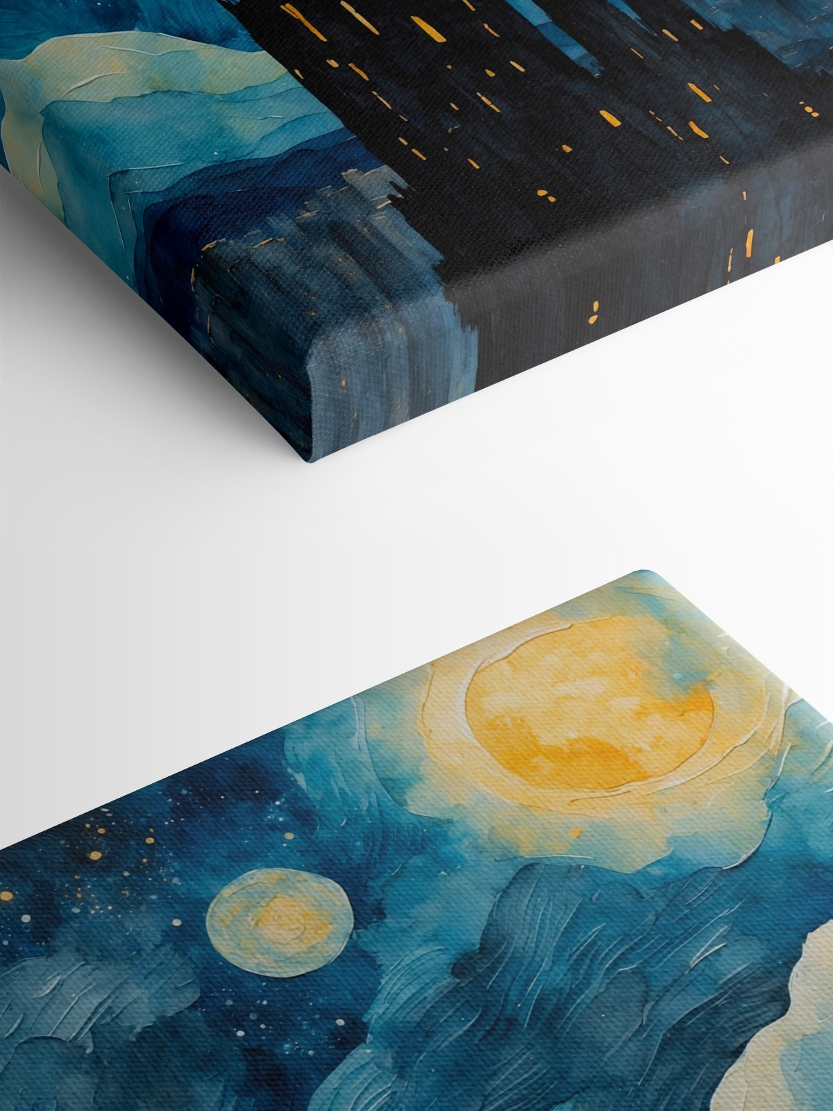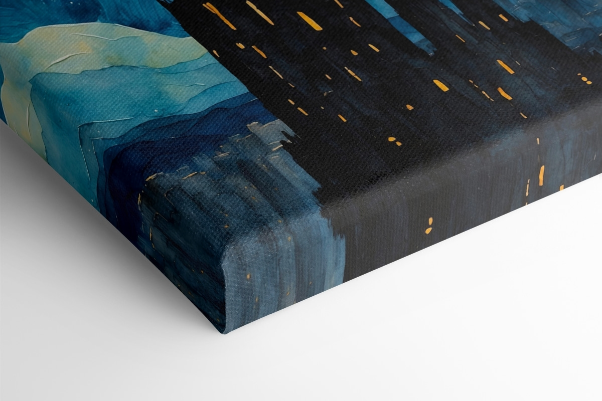 Transformați un perete plictisitor într-o evadare de vis cu această imprimare pe pânză “Acuarelă a unui oraș noaptea”. Imaginați-vă albastrul vibrant învârtindu-se sub un cer întunecat, presărat cu luni luminoase care par să vă facă cu ochiul. Vârfurile impunătoare evocă orașe îndepărtate, poate trezind amintiri despre plimbări nocturne sau despre acea călătorie despre care încă mai vorbiți. Perfectă pentru a adăuga un pic de fantezie camerelor de zi sau dormitoarelor, aceasta invită la visare cu ochii deschiși sau la conversații profunde. Cine nu și-ar dori să privească această piesă în timp ce soarbe ceai sau cafea? Este ca și cum ai aduce acasă o bucățică din cosmos – misterioasă, dar confortabilă!