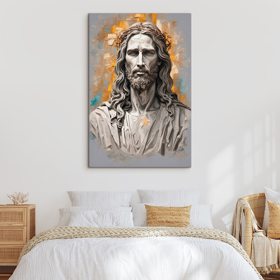 Această imprimare uimitoare pe pânză a unui bărbat încoronat cu spini este mai mult decât un simplu decor – este un starter de conversație. Imaginați-vă-o agățată pe un perete, dând un aer grijuliu spațiului dvs. Detaliile fine din expresia personajului par aproape vii, îndemnând privitorii să se oprească și să reflecteze.