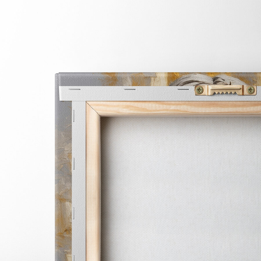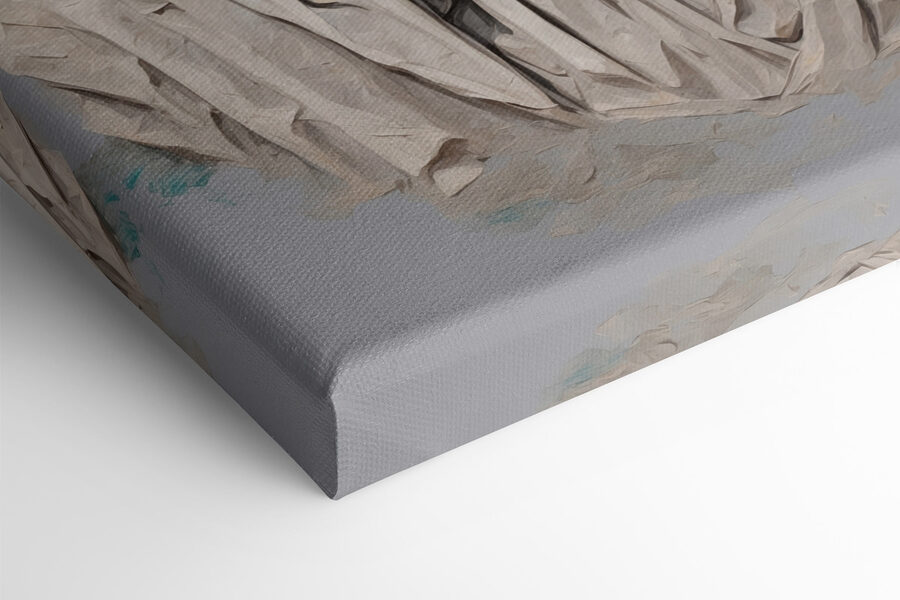 Fundalul moale de acuarelă cu stropi de tonuri calde adaugă un sentiment de seninătate, amintindu-ne de puterea în vulnerabilitate. Perfectă pentru un colț de lectură confortabil sau un colț de meditație liniștită, aceasta invită la momente de introspecție. În plus, de fiecare dată când cineva trece pe lângă ea, imaginați-vă privirile curioase și întrebările intrigante – cu siguranță o piesă care va inspira povești și poate chiar un pic de râs.
