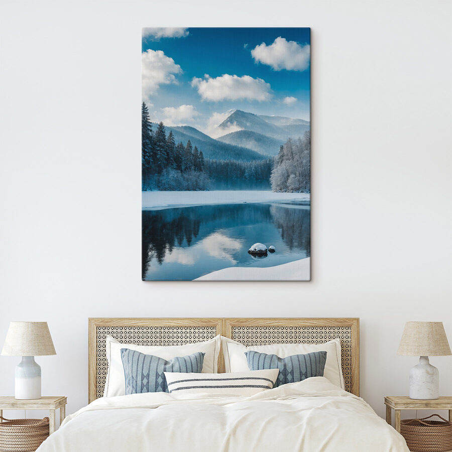 Transformați orice spațiu într-un tărâm al minunilor de iarnă cu această imprimare captivantă pe pânză a unui lac senin, învăluit într-o îmbrățișare de zăpadă. Aproape că poți auzi zăpada scârțâind sub picioare și poți simți aerul proaspăt și curat! Copacii înalți care se înalță mândri în jurul apei reflectă calmul perfect al naturii, șoptindu-ți secrete de liniște. Imaginați-vă că vă așezați într-un fotoliu, cu o cacao fierbinte în mână, cu această frumusețe în apropiere. Este ca și cum ai avea o bucată de sălbăticie liniștită chiar în casa ta – nu sunt necesare cizme de drumeție! Perfectă pentru oricine dorește o atingere a magiei naturii, această imprimare aduce aerul liber înăuntru – fără degerături!