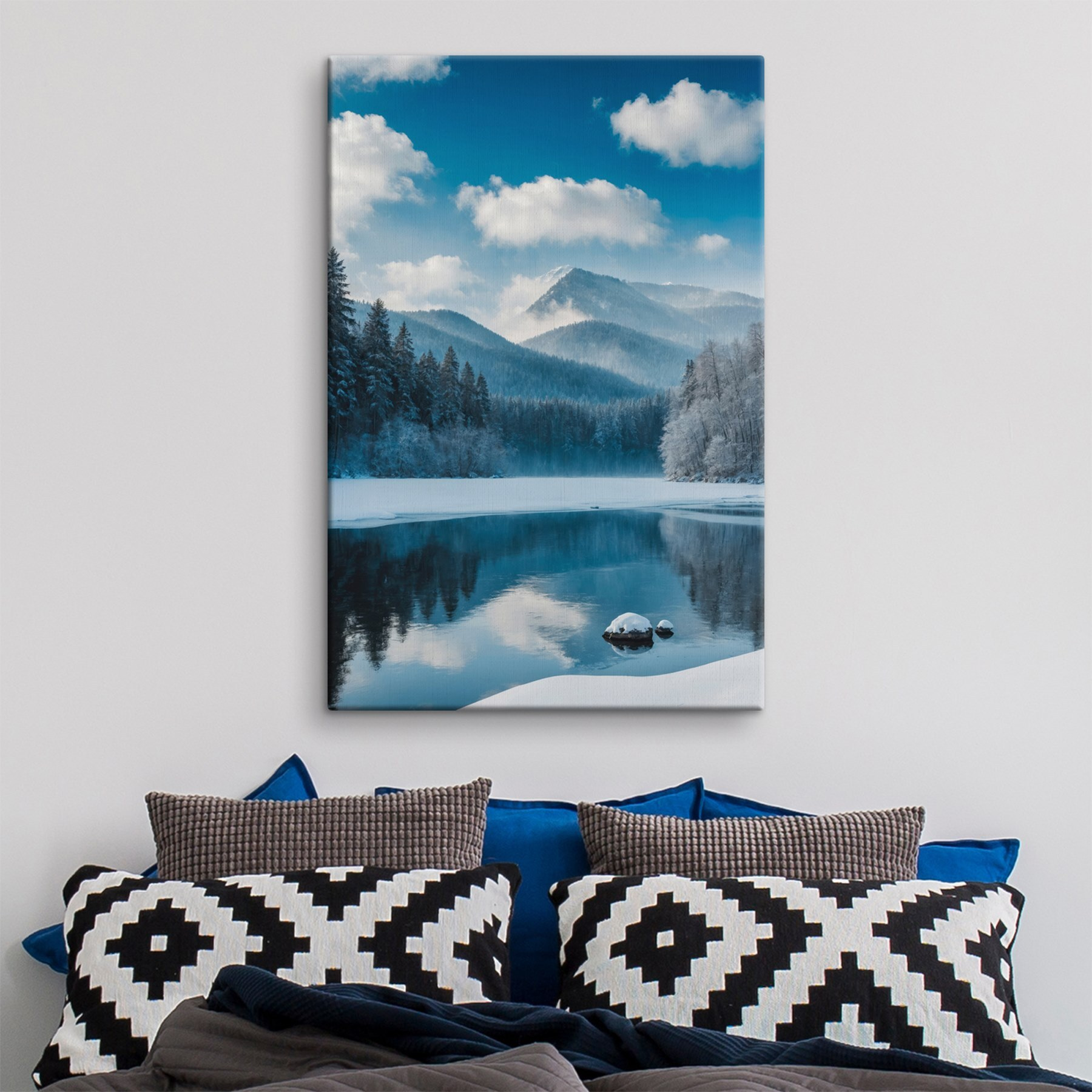 Transformați orice spațiu într-un tărâm al minunilor de iarnă cu această imprimare captivantă pe pânză a unui lac senin, învăluit într-o îmbrățișare de zăpadă. Aproape că poți auzi zăpada scârțâind sub picioare și poți simți aerul proaspăt și curat! Copacii înalți care se înalță mândri în jurul apei reflectă calmul perfect al naturii, șoptindu-ți secrete de liniște. Imaginați-vă că vă așezați într-un fotoliu, cu o cacao fierbinte în mână, cu această frumusețe în apropiere. Este ca și cum ai avea o bucată de sălbăticie liniștită chiar în casa ta – nu sunt necesare cizme de drumeție! Perfectă pentru oricine dorește o atingere a magiei naturii, această imprimare aduce aerul liber înăuntru – fără degerături!