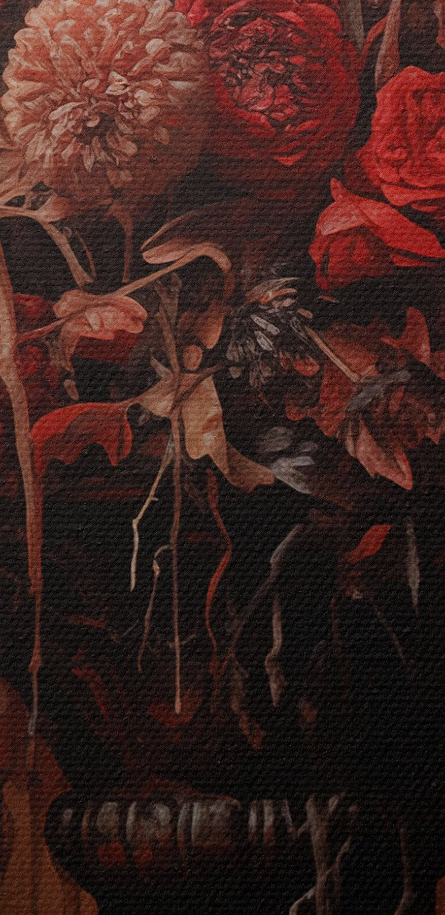 Transformați-vă spațiul cu această imprimare captivantă pe pânză cu o pasăre neagră misterioasă cocoțată pe o vază elegantă plină cu flori luxuriante și lumânări pâlpâitoare. Este ca un amestec perfect de farmec gotic și frumusețea naturii – toate cuprinse într-o singură piesă uimitoare. Imaginați-vă cum această operă de artă ar putea stârni conversații sau poate chiar inspira un pic de visare cu ochii deschiși despre grădini fermecătoare. Roșul intens și umbrele bogate îi conferă un aer dramatic, perfect pentru serile confortabile. Fiecare privire ar putea șopti secrete ale nopții, invitând o notă de fantezie în orice cameră. Este mai mult decât un decor; este o experiență care abia așteaptă să își găsească locul pe peretele tău.