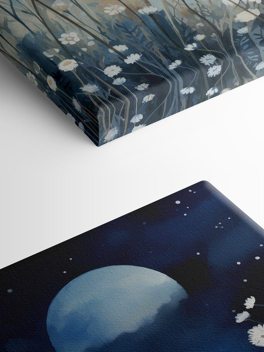 Transformați-vă spațiul cu această imprimare pe pânză încântătoare cu flori albe pe un cer nocturn de vis. Imaginați-vă că vă plimbați printr-o grădină luminată de lună, unde legănarea blândă a petalelor șoptește secretele naturii. Aceste flori delicate sunt ca niște steluțe presărate pe un fundal albastru moale, aducând un sentiment de calm și liniște. Perfectă pentru un colțișor de lectură confortabil sau ca piesă statement în camera de zi, această artă captează atât eleganță, cât și seninătate. Lăsați-o să inspire vise dulci și o atingere de magie a naturii în fiecare zi. Cine ar fi crezut că florile pot fura lumina reflectoarelor în acest fel?