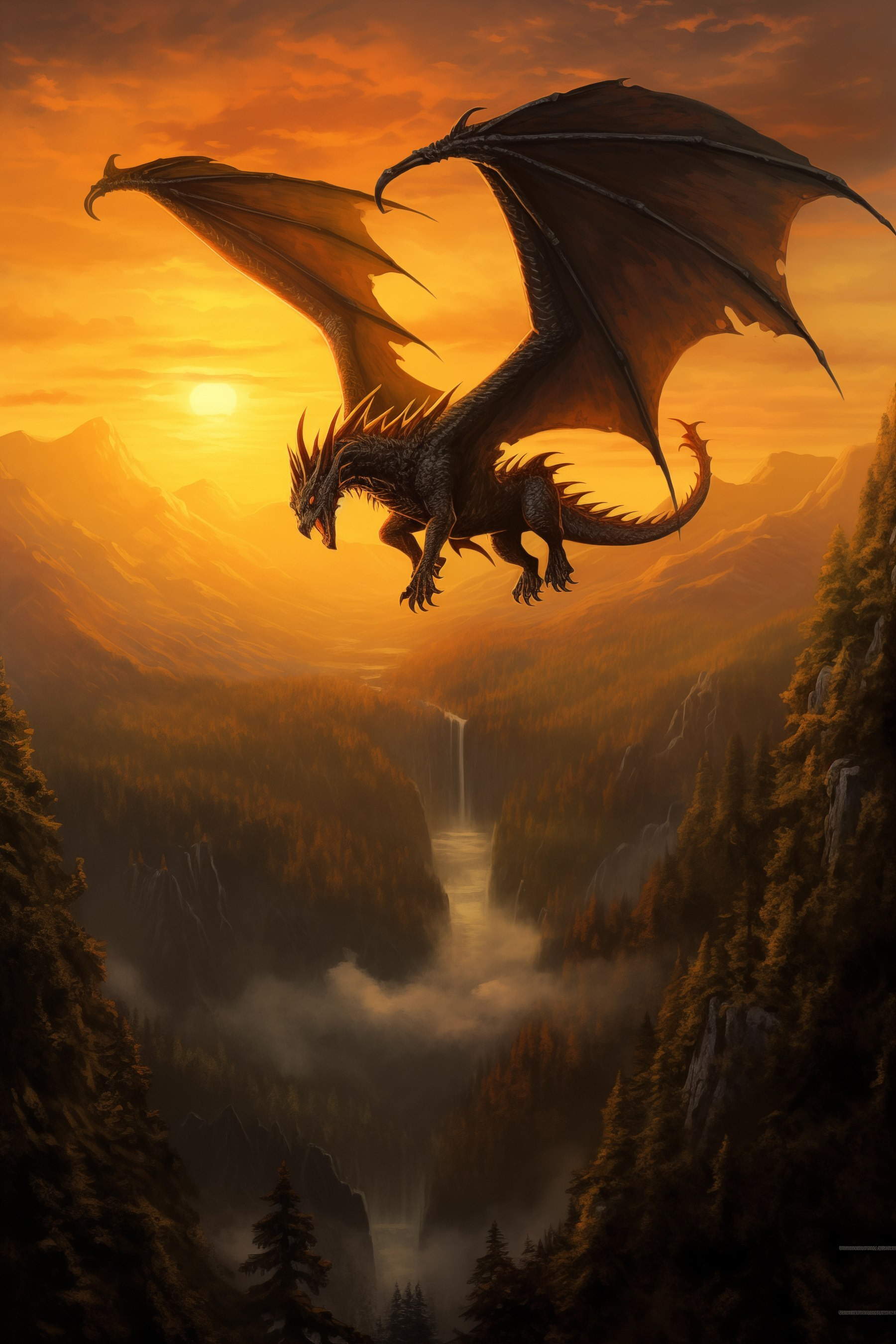 Aduceți o notă de aventură în spațiul dvs. cu această imprimare uimitoare pe pânză, “Dragon Flying Over a Valley”. Imaginați-vă acest lucru: un dragon maiestuos zburând printr-un apus de soare înflăcărat, cu aripile întinse larg, ca și cum v-ar invita să vă alăturați călătoriei sale mistice. Culorile vibrante și peisajul dramatic creează un sentiment de uimire, făcând fiecare privire să se simtă ca o mini evadare. Perfectă pentru camera de zi sau pentru un colț de lectură confortabil, această operă de artă stârnește conversații și aprinde imaginația. Este genul de piesă care te transportă într-o altă lume, poate chiar stârnește o poveste sau două. Cine nu și-ar dori un pic de magie pe pereții săi?