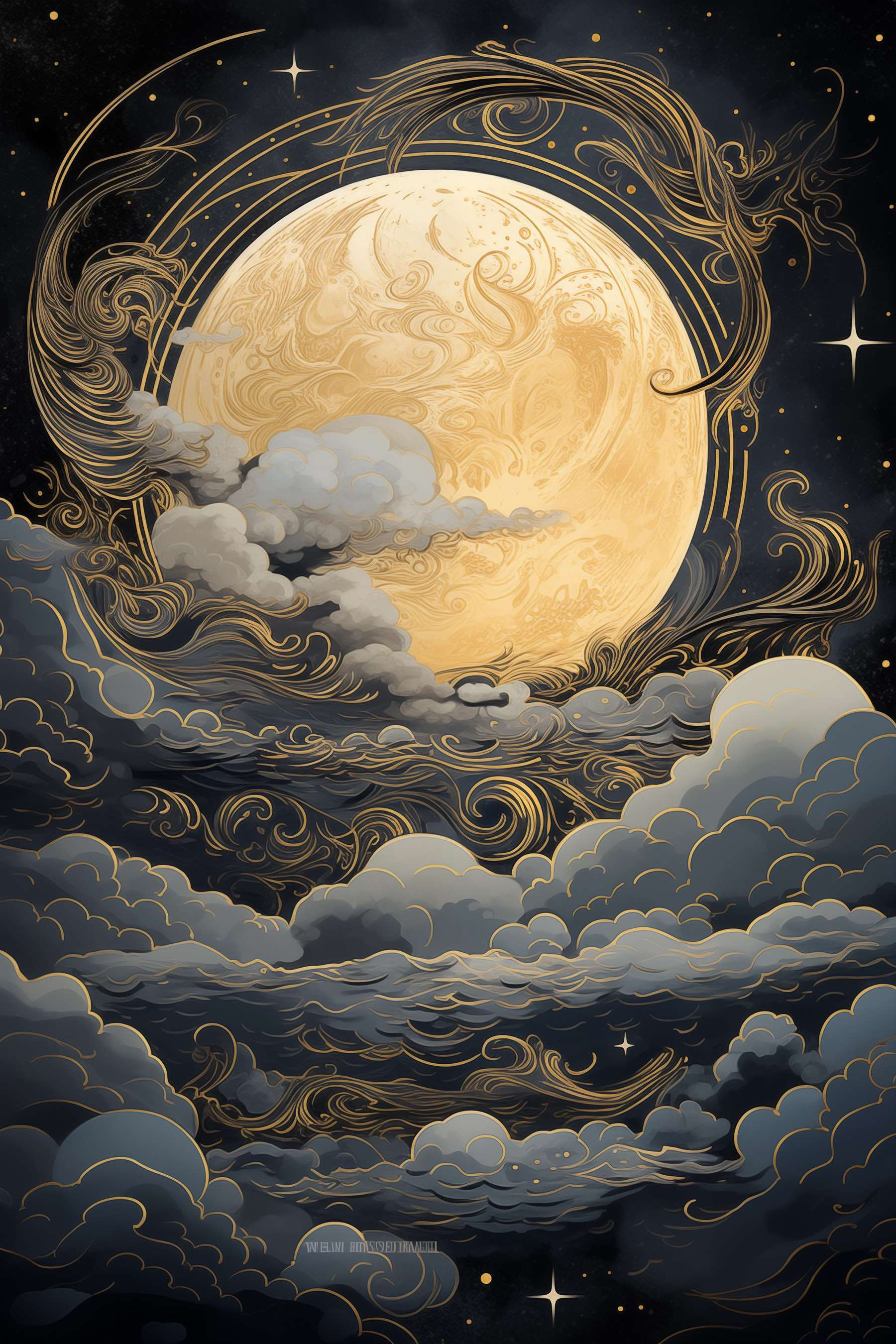 Plimbați-vă în lumea viselor cu această imprimare pe pânză hipnotizantă, “Tablouri Moon in the clouds”. Acesta surprinde o lună uimitoare înconjurată de nori în vârtej, creând o atmosferă senină care vă invită ușor să vă opriți și să o admirați. Imaginați-vă că intrați în camera dvs. și simțiți imediat vibrația calmă care vă învăluie. Fie că este agățată deasupra unui colț de lectură confortabil sau servește ca punct focal uimitor în camera dvs. de zi, această piesă aduce puțină magie cosmică în interior. Perfectă pentru cei care iubesc nopțile liniștite și privitul la stele; este ca și cum ai avea un pic de cer nocturn chiar în confortul casei.