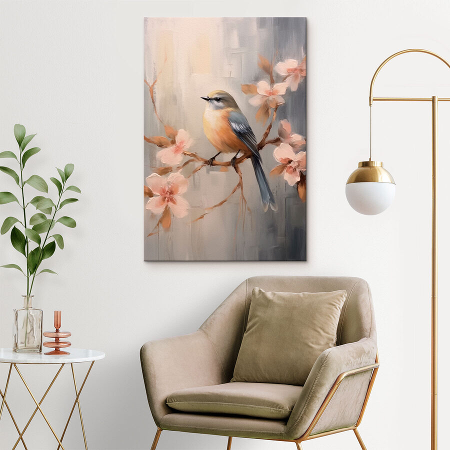 Aduceți o notă de natură în casă cu această imprimare fermecătoare pe pânză cu o pasăre încântătoare cuibărită pe o ramură delicată împodobită cu flori roz. Este ca și cum ai avea o bucățică din lumea exterioară chiar în camera ta de zi. Imaginați-vă sorbindu-vă cafeaua în timp ce această scenă vibrantă vă înseninează ziua. Culorile blânde evocă un sentiment de calm, făcându-l perfect pentru colțurile confortabile sau pentru o atmosferă senină în dormitor. Și cine nu ar zâmbi la o pasăre veselă care veghează? Nu este doar un decor; este un mic memento pentru a lua o pauză și a aprecia frumusețile simple ale vieții.