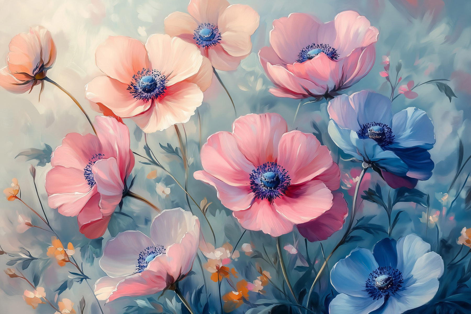 Înveseliți orice spațiu cu această imprimare uimitoare pe pânză, care prezintă un buchet de flori vesele dansând pe un fundal albastru liniștitor. Este ca și cum ai aduce o bucată de natură în casă, fără stropitoarea și albinele ocazionale. Nuanțele blânde și formele jucăușe creează o atmosferă primitoare, făcându-l perfect pentru sufragerie, dormitor sau chiar pentru un colț de lectură confortabil. Imaginați-vă că vă relaxați cu o ceașcă de ceai, înconjurați de aceste petale frumoase, simțind cum stresul se topește. Este o artă care șoptește căldură și confort – exact ceea ce aveți nevoie pentru un plus de fericire în viața de zi cu zi!