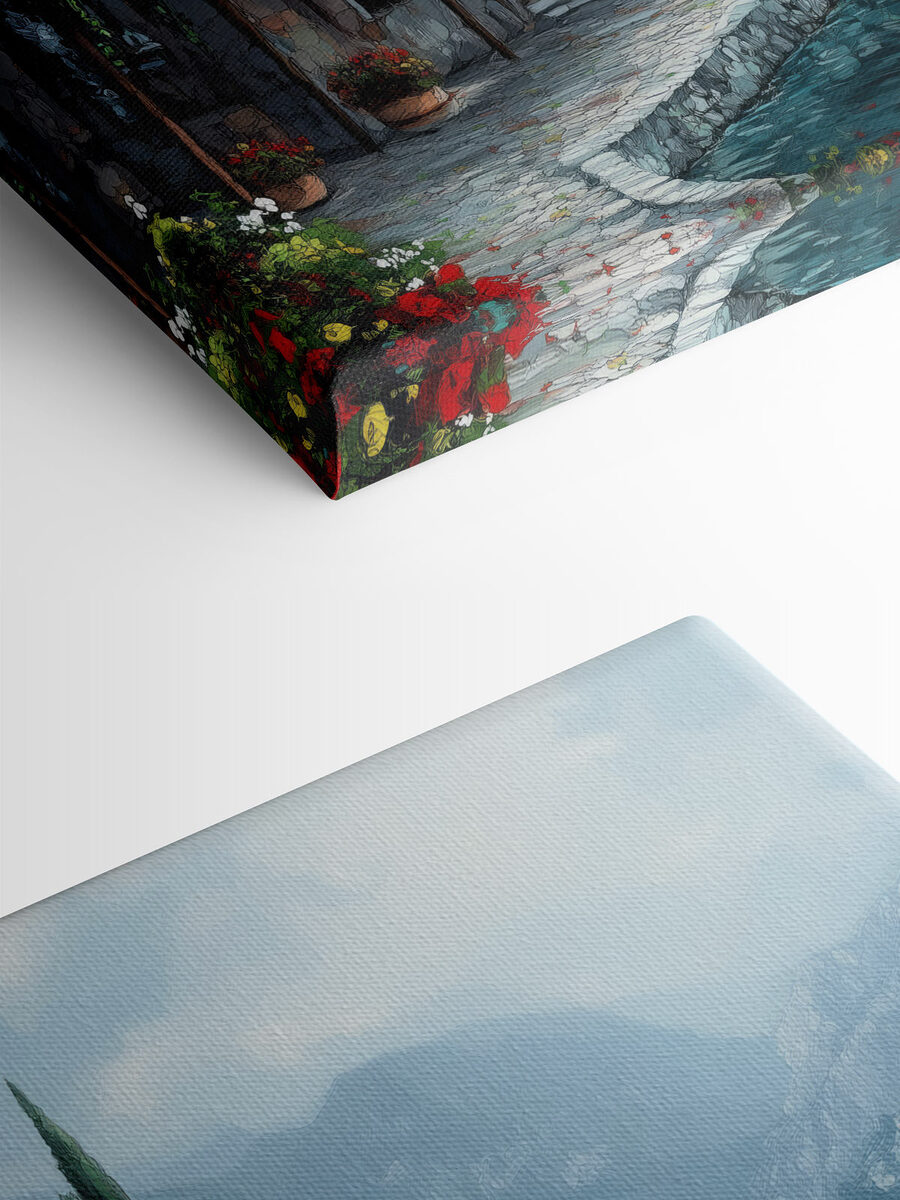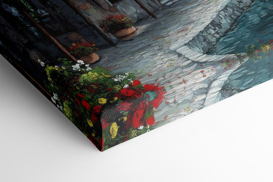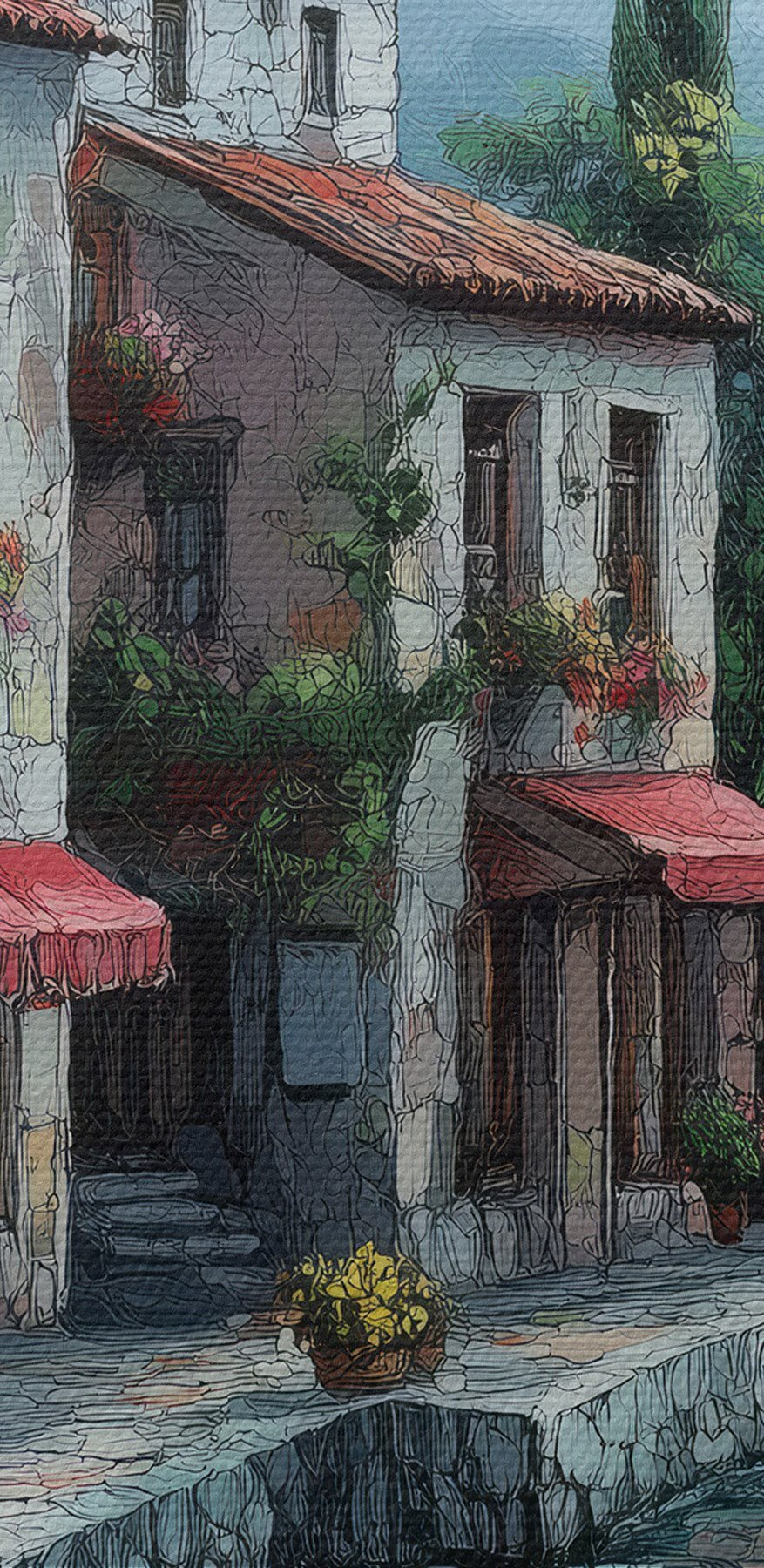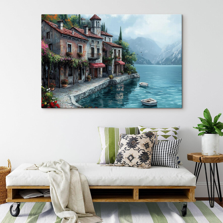Imaginați-vă că pășiți într-o scenă senină în care clădiri fermecătoare îmbrățișează marginea unui lac strălucitor, încadrate de verdeață luxuriantă și munți îndepărtați. Acest print pe pânză surprinde această atmosferă de vis, aducând o bucată de evadare liniștită chiar într-o cameră. Perfectă pentru un colț de lectură sau pentru a înveseli un hol, ea vorbește despre după-amiezele leneșe petrecute sorbind cafea sau plănuind excursii spontane cu barca. Cu nuanțele sale vibrante, invită la căldură și veselie, făcând orice spațiu să se simtă un pic mai mult ca acasă. Și, hei, cine nu și-ar dori să se simtă ca într-o mini-vacanță în fiecare zi?