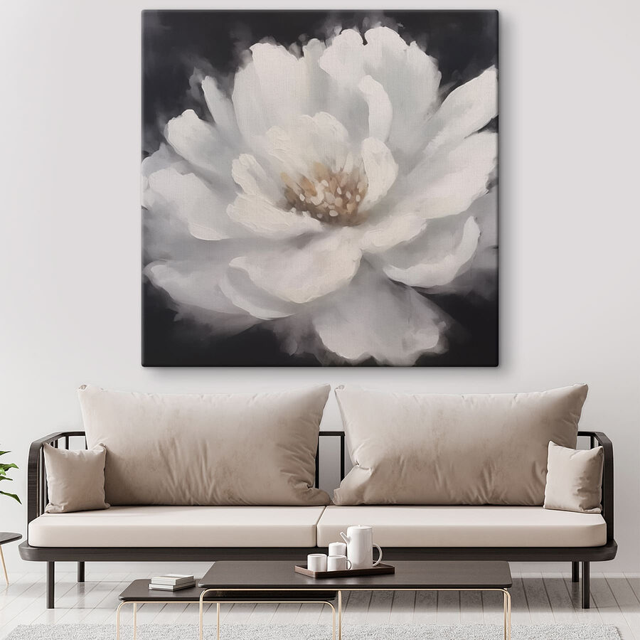 Înveseliți orice spațiu cu această imprimare uimitoare pe pânză care prezintă o floare albă delicată cu un centru galben însorit. Este ca și cum ai aduce un pic de grădină înăuntru, fără complicațiile udării – bonus! Imaginați-vă această frumusețe agățată într-un colț confortabil, radiind vibrații calme și eleganță blândă. Prietenii s-ar putea să treacă pe acolo și să se întrebe dacă ați cultivat în secret un deget verde. Culorile sale moi, de vis, se integrează perfect în orice stil de decor, de la modern la boho. Perfectă pentru decorarea unui perete gol sau ca punct de atracție încântător într-o cameră. Cine nu și-ar dori această explozie de farmec natural în casa sa? Este o piesă de artă care vă va face să zâmbiți de fiecare dată când o priviți, ca un secret preferat împărtășit între prieteni.