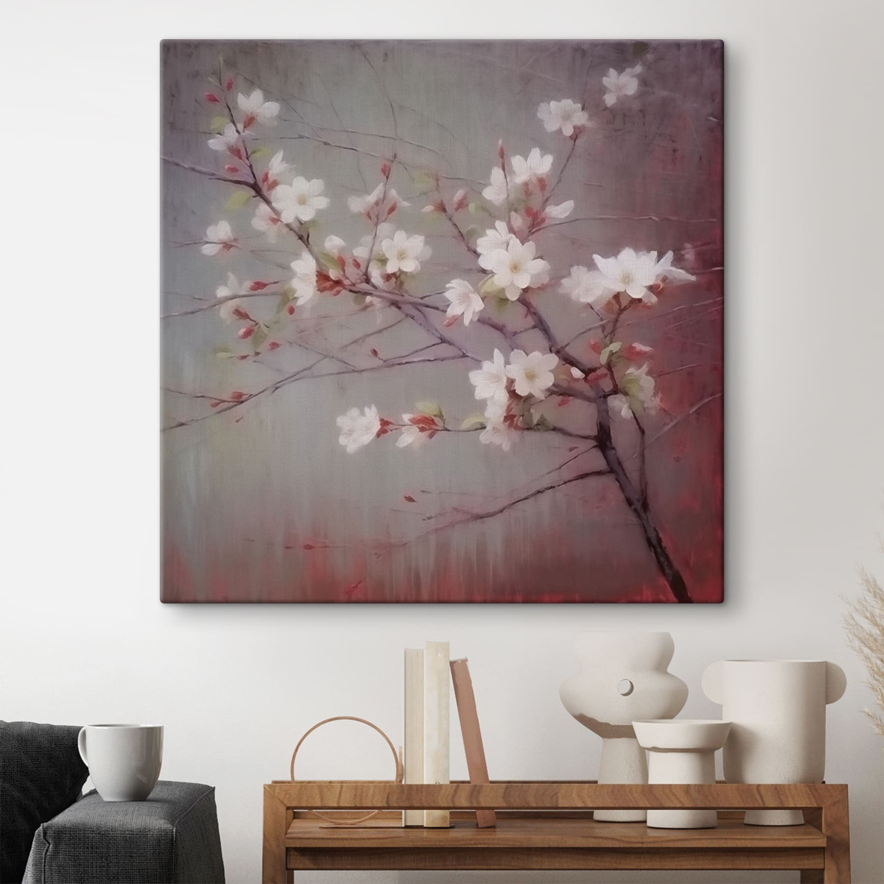 Transformați-vă spațiul cu această imprimare uimitoare pe pânză cu flori albe dansând pe o ramură delicată. Este ca și cum primăvara a decis să stea în sufrageria dvs., aducând acel vibe proaspăt, înălțător pe tot parcursul anului. Imaginați-vă că sorbiți o cafea și aruncați o privire asupra acestor flori; o îmbunătățire instantanee a dispoziției, nu-i așa? Culorile blânde creează o atmosferă liniștitoare, perfectă pentru a lăsa stresul să plutească departe. Agățați-o într-un colț confortabil și priviți cum prietenii se opresc și zâmbesc, simțind toate vibrațiile bune. Această piesă nu este doar artă – este o mică felie de natură care îți șoptește “relaxează-te” de fiecare dată când treci pe lângă ea.